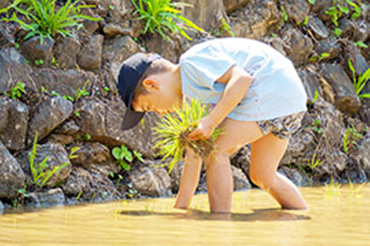 今年で4度目となるペンシル棚田の田植えを行いました。