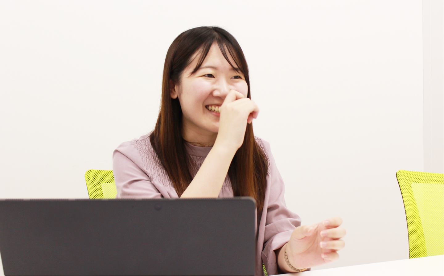 同世代の若い方も多いですし、上司やリーダーも率先して話しかけてくれたり、新人が孤立しないような職場環境みたいなものが見えて、そこがすごく好印象でした。社員同士の仲も良くて一緒にランチに行ったり、中にはプライベートでも遊ぶ人がいたり、お互い気軽でフラットな関係性がありますね。