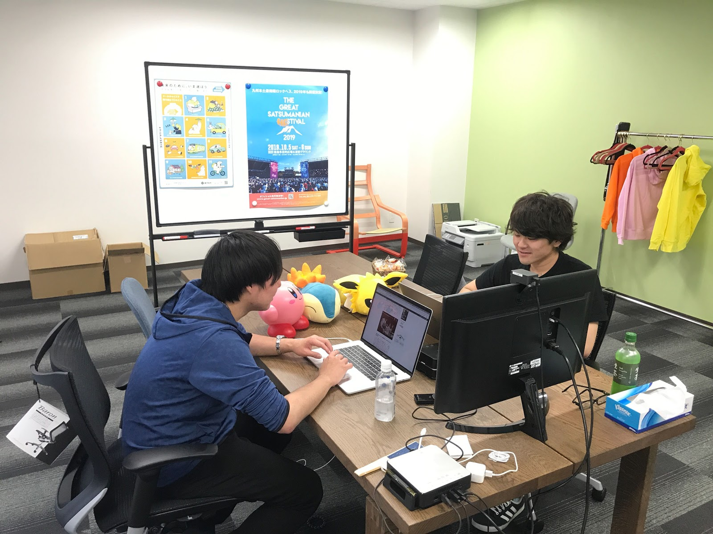 鹿児島オフィスができたばかりなので、オフィスの整理、荷物の受け取りなど何でもやってます。鹿児島オフィスで「Pepabo Maker Festival Kagoshima 1st」を開催したり、「WALK INN FES! 2019」に参加しブースを出展したりもしました。