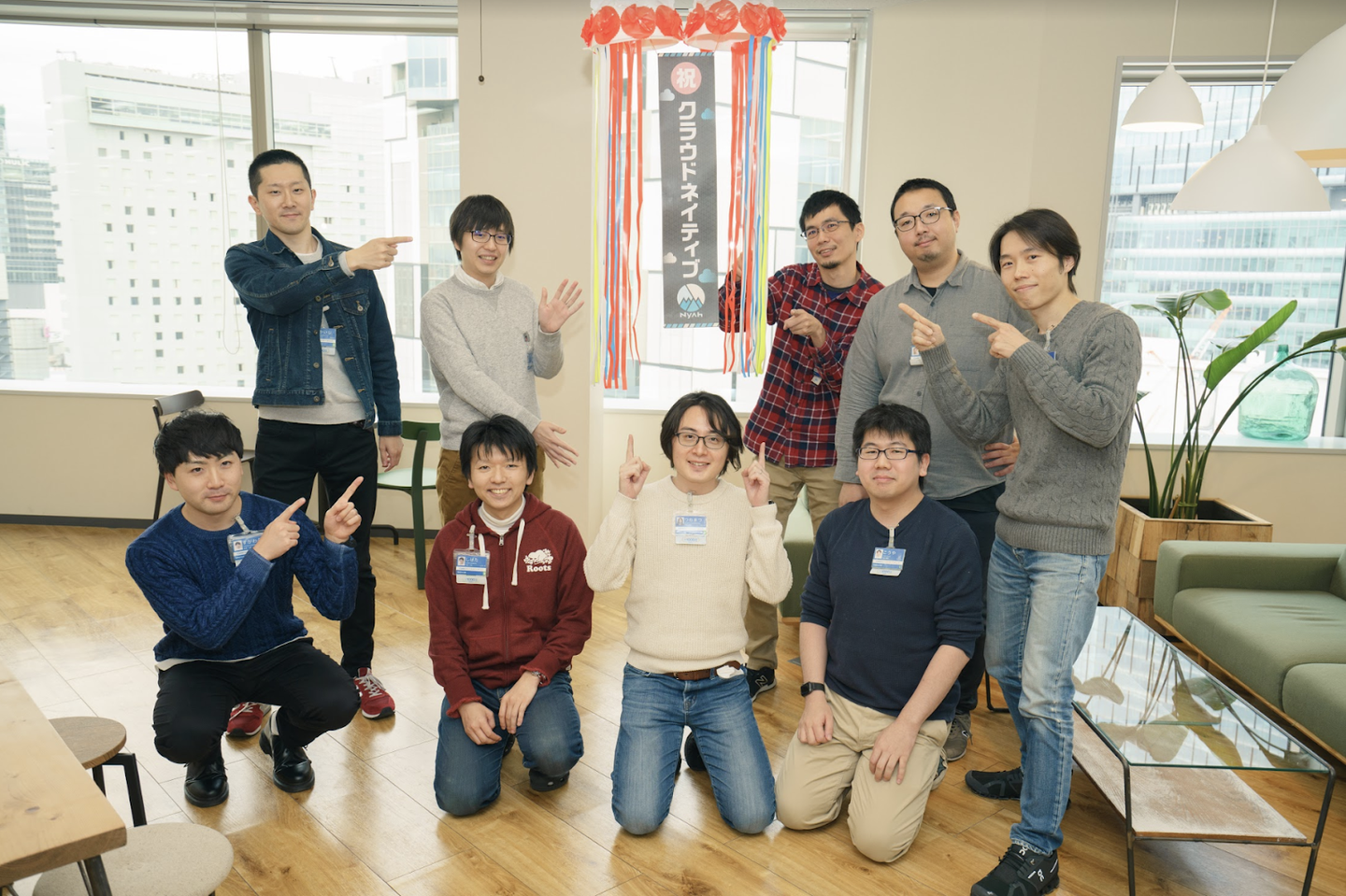 ↑チームでクラウドネイティブ化をしたときのくす玉割りの様子