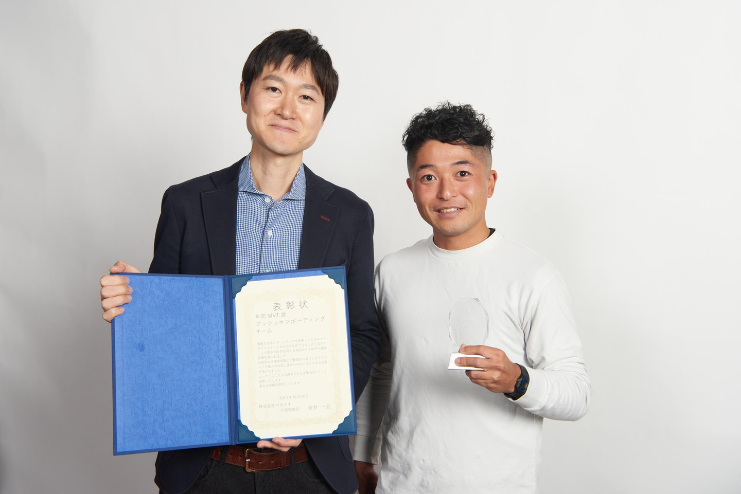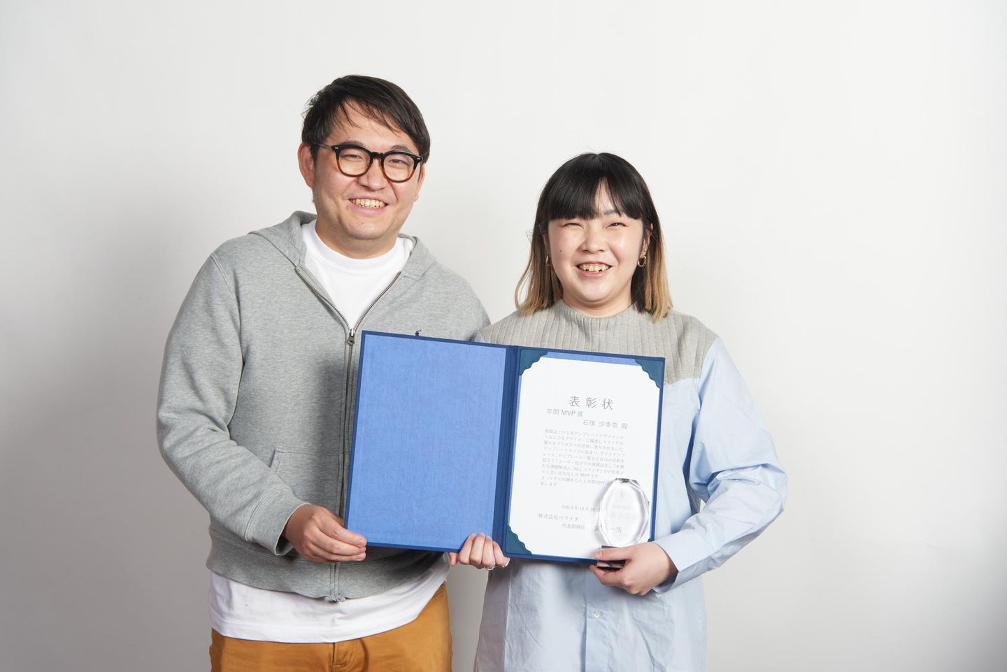 (写真↑)MVP(年間)の受賞、デザイナーの石塚さんと安井CEO