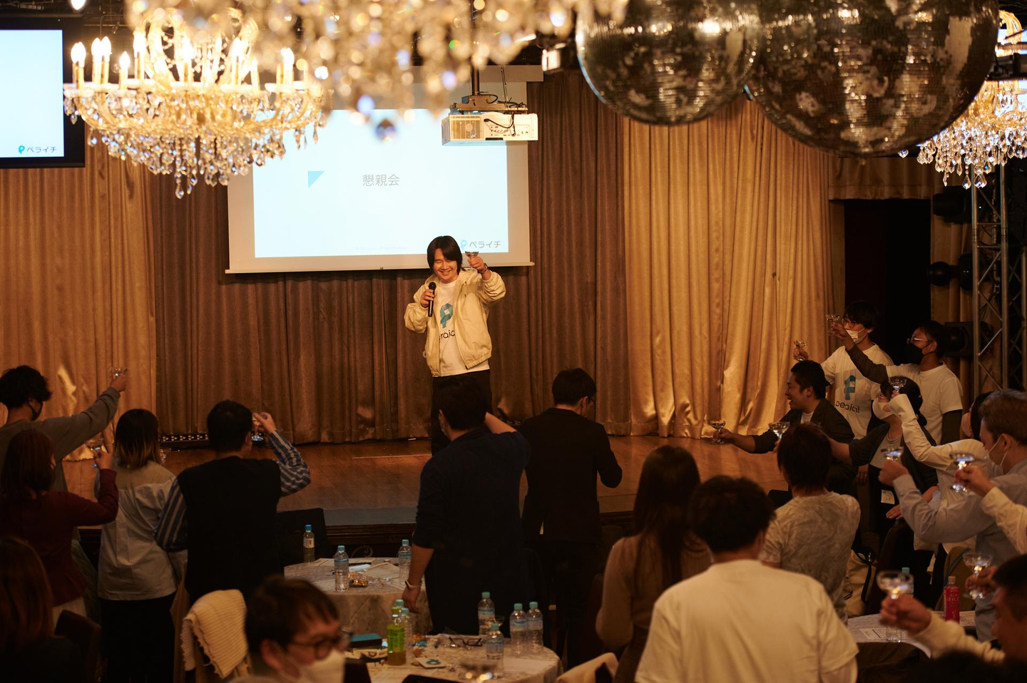 実は本編と同じ会場で行う懇親会は、弊社初の試みでした。普段はお店を移動していたので、ご家族都合や遠方住まいで早めに帰らないといけないメンバー達も、今回初めて懇親会にも参加。全員残って乾杯ができました。