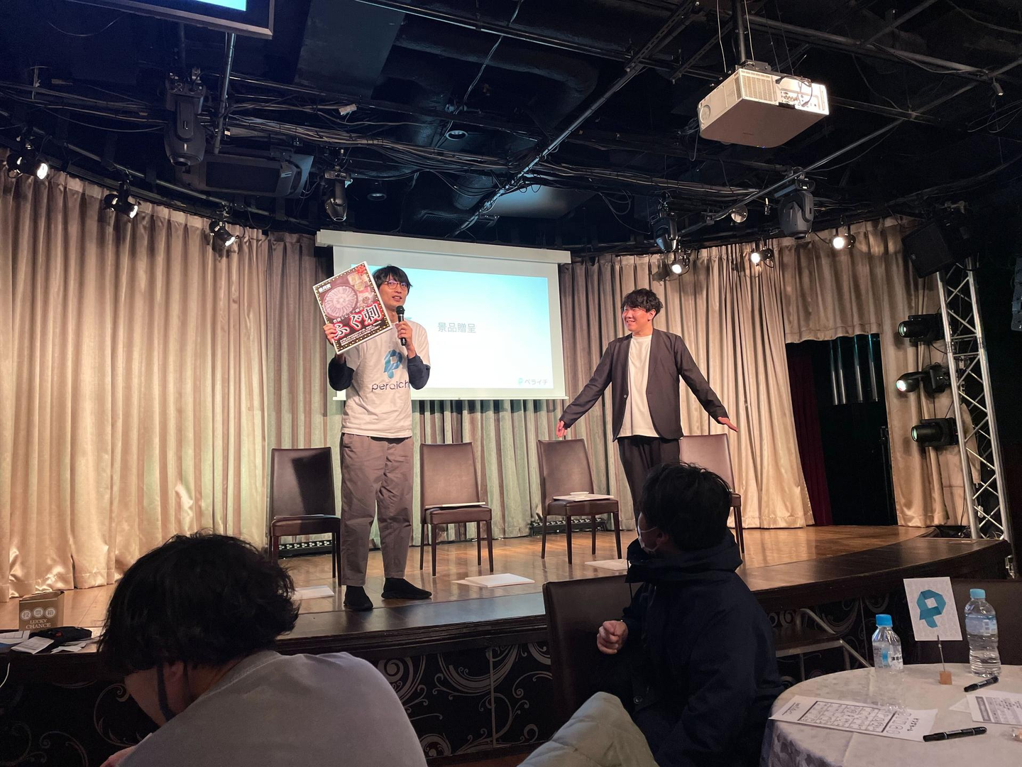 終盤はリーチ者が20名近く出て「〇〇さんが出たらビンゴなのにな~」「■■さん出ろ~~」「なんでここで△△さんが出んだ~~」と会場は大盛り上がり。盛り上がりすぎて全体写真を撮り忘れてしまったのですが、景品贈呈やビンゴしたメンバーの様子をお届けします。