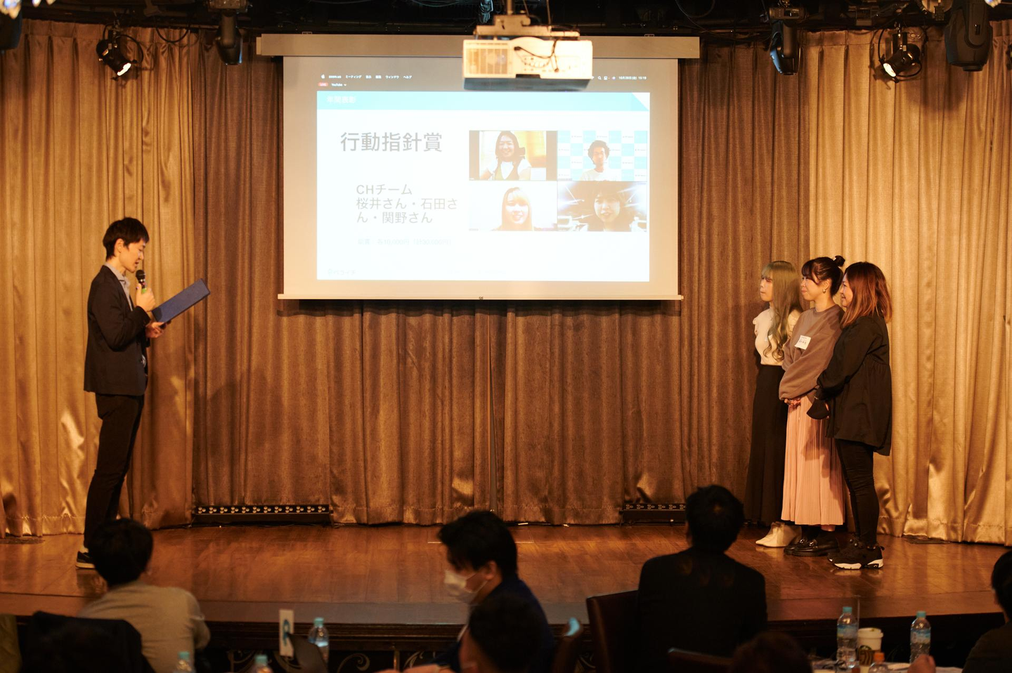 (写真↑)行動指針賞(年間)の受賞の様子と、受賞メンバー&日吉CMO