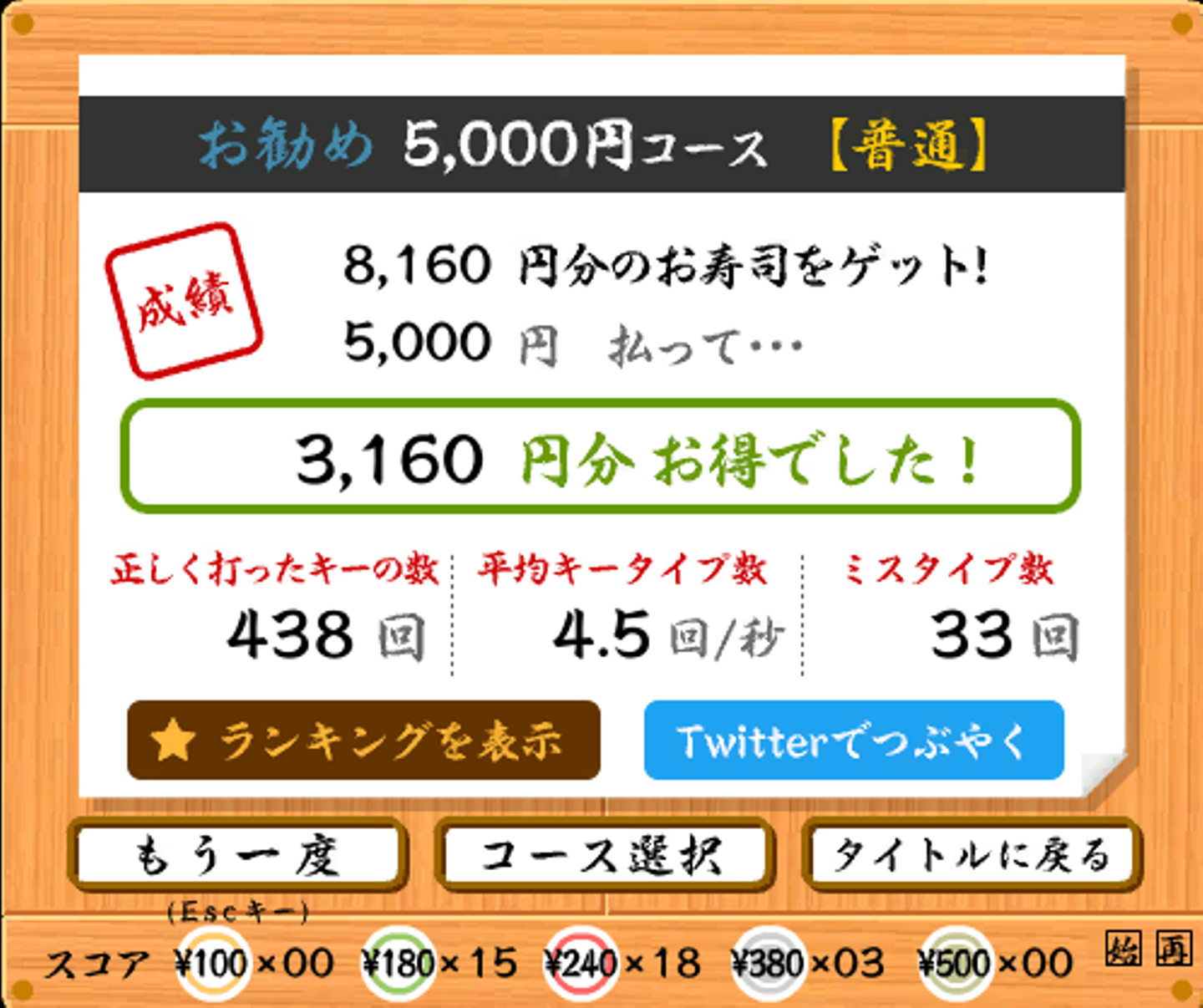 ”寿司打”というアプリがWEB上で存在するのですが、こちらで自分がどれくらいのタイピング速度なのかを測定してみんなで共有したりしています。みんなで同じコースを設定してやっているのですが、普段は”お勧め5000円コース”を利用しています!