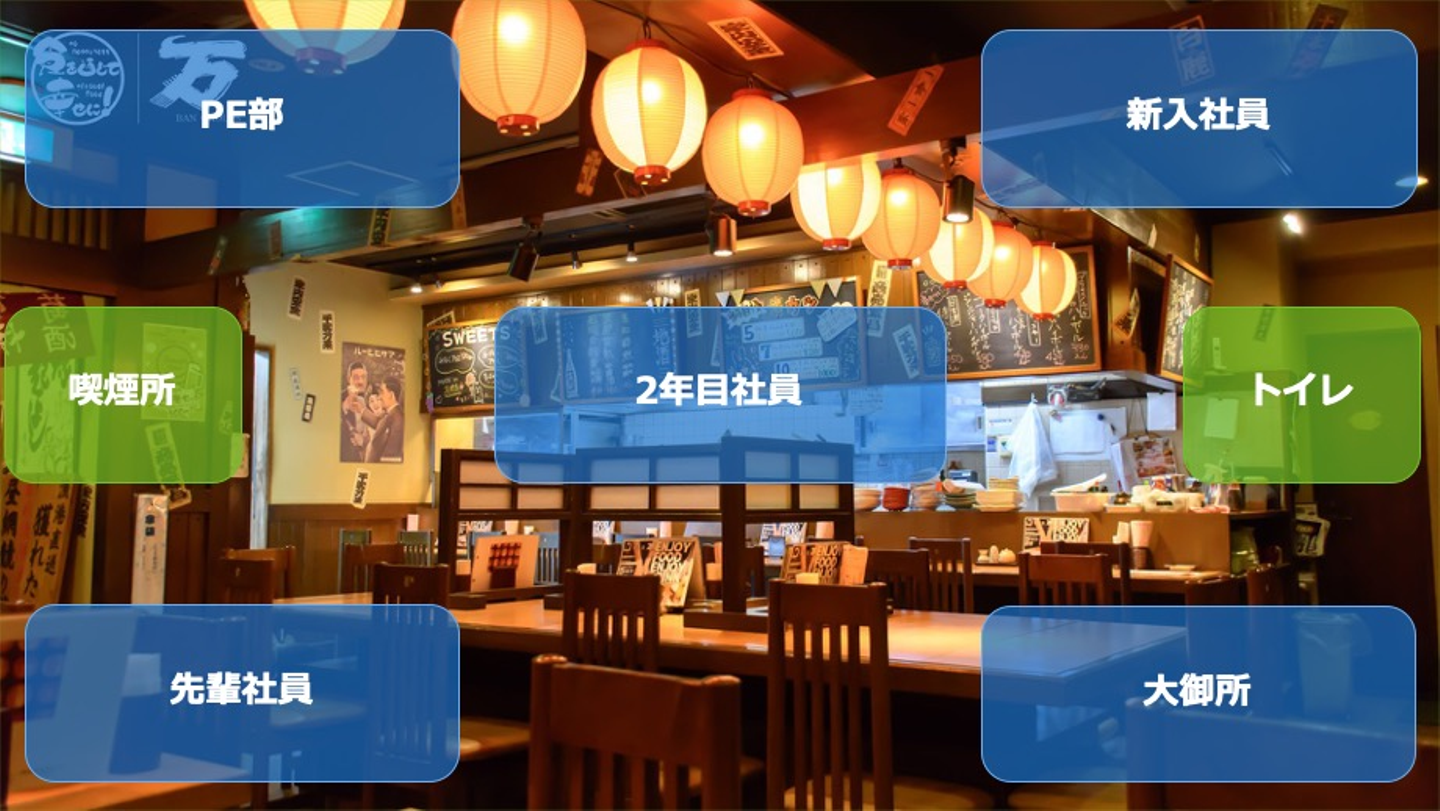 「どのテーブルに、誰(社員)がいるか」を予め共有し、