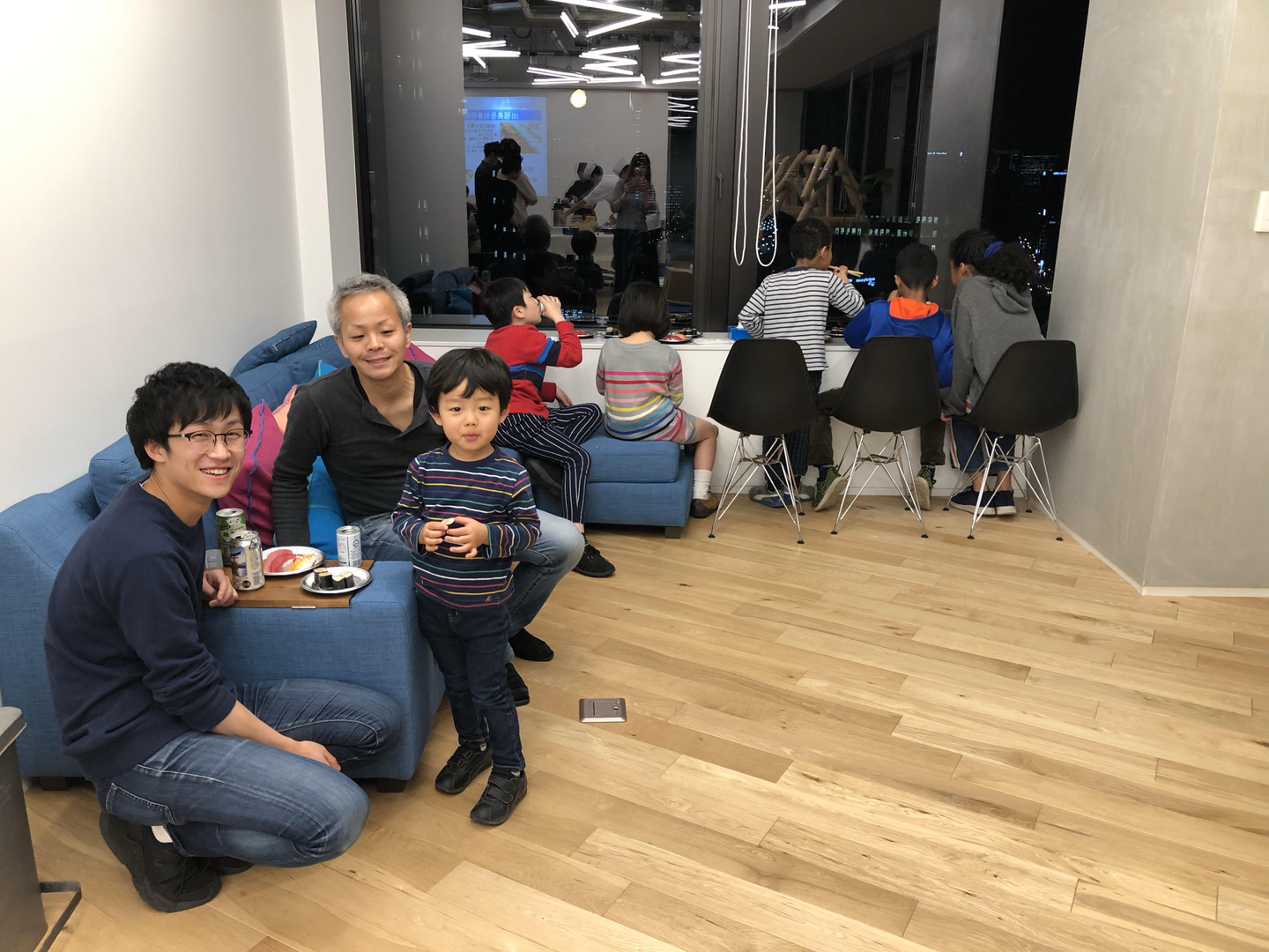 今回も、子連れ参加OKですので、社員のお子さんたちがたくさん参加されました。 特にソファ席周辺が、お子様ゾーンになりました。