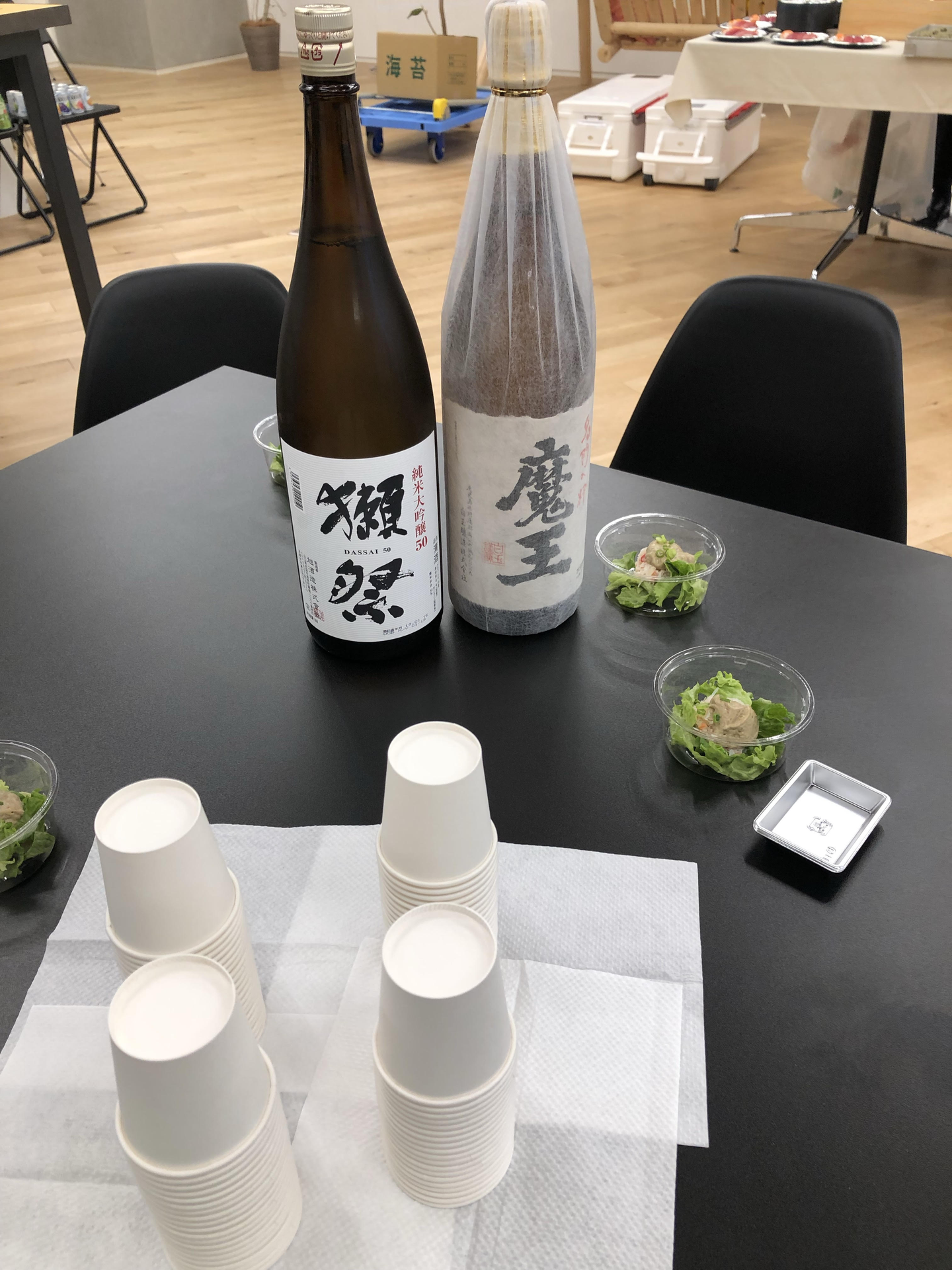 日本酒好きの社員のために、なかなか手に入らない獺祭と魔王の一升瓶も振るまわれました。