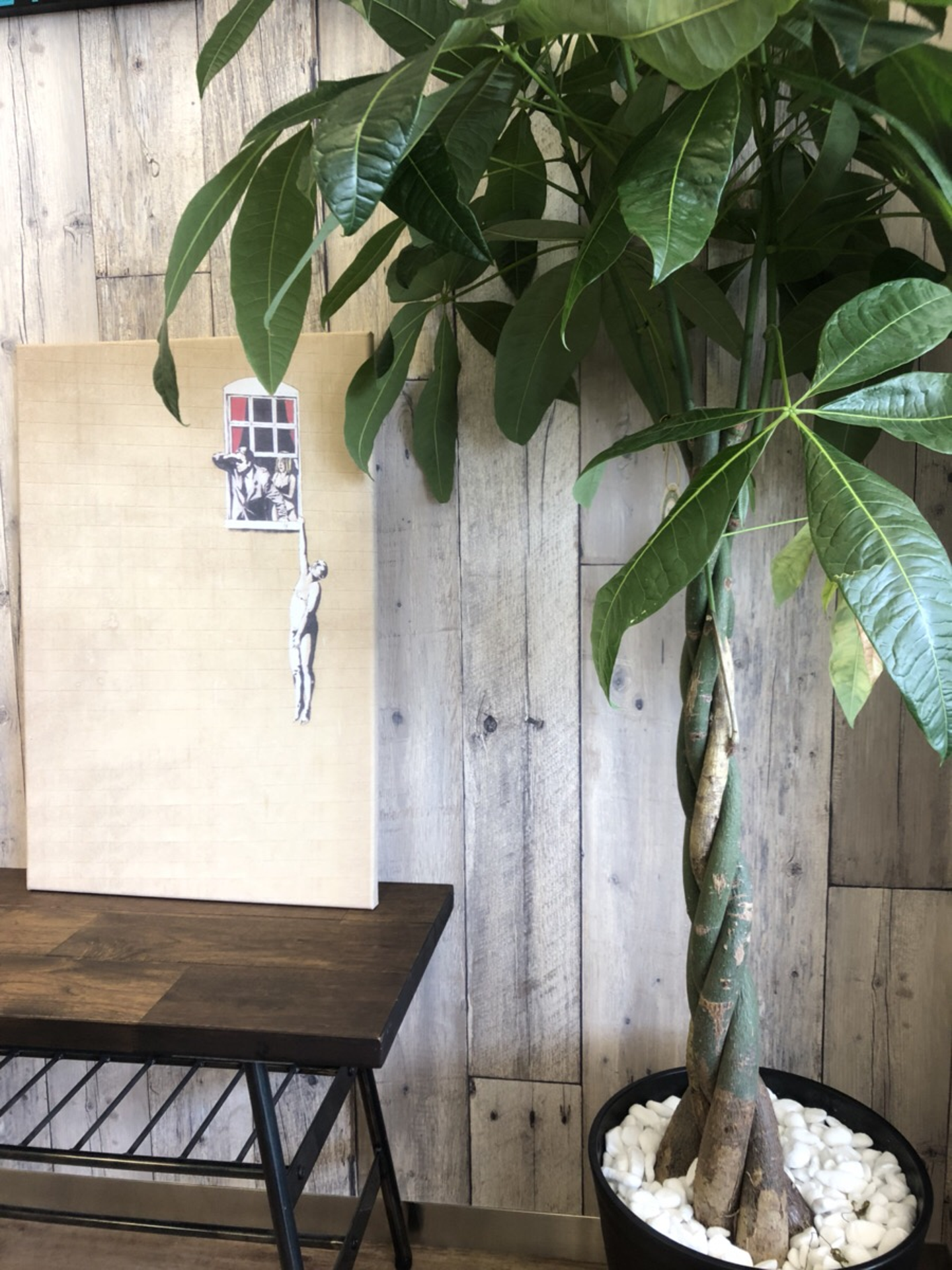 観葉植物を置いていたり、代表がチョイスしたアートパネルを飾っていたりします。