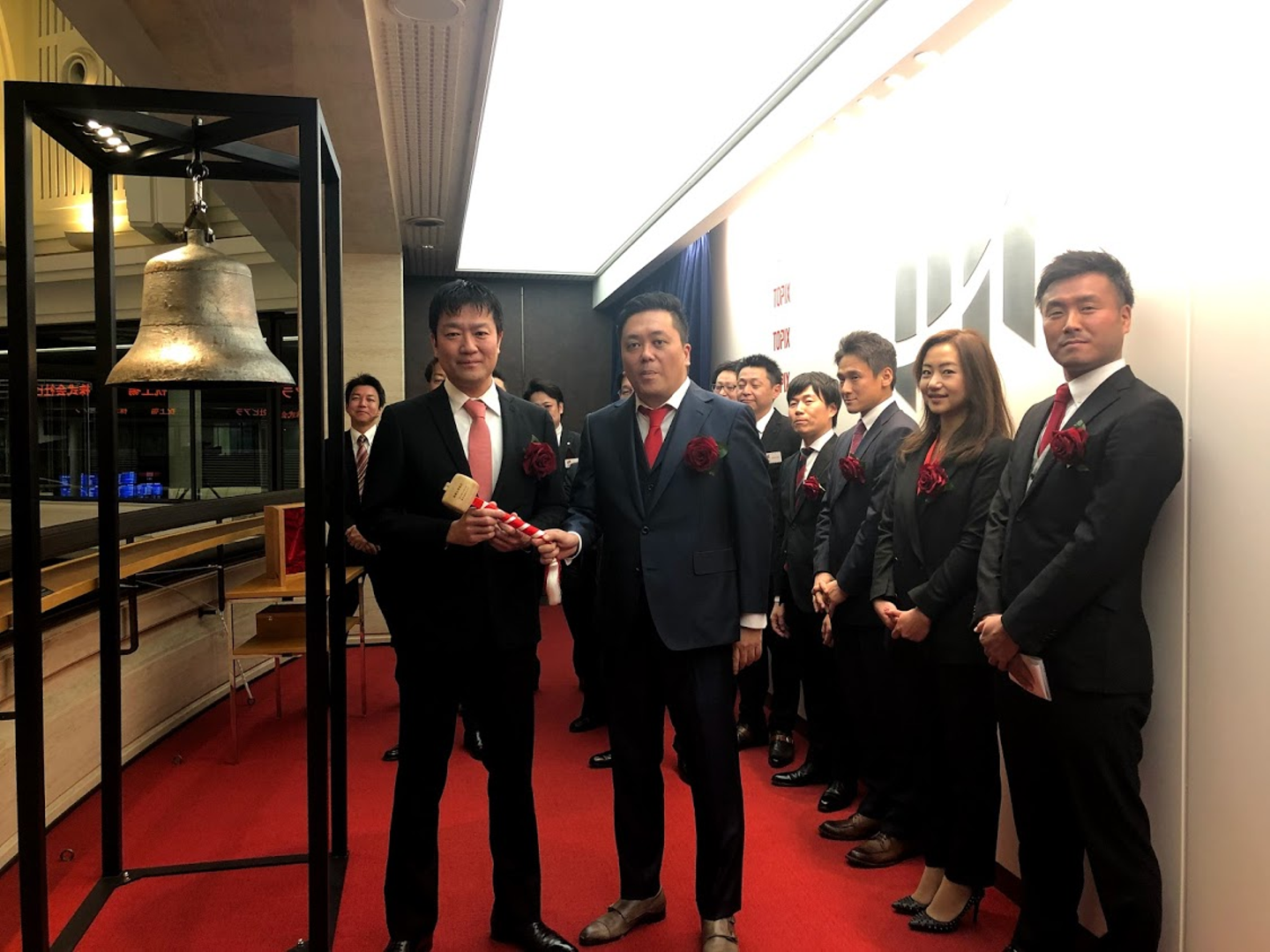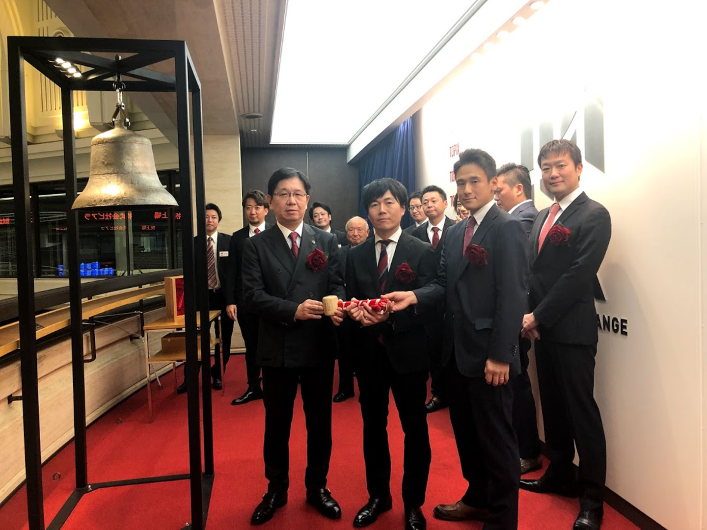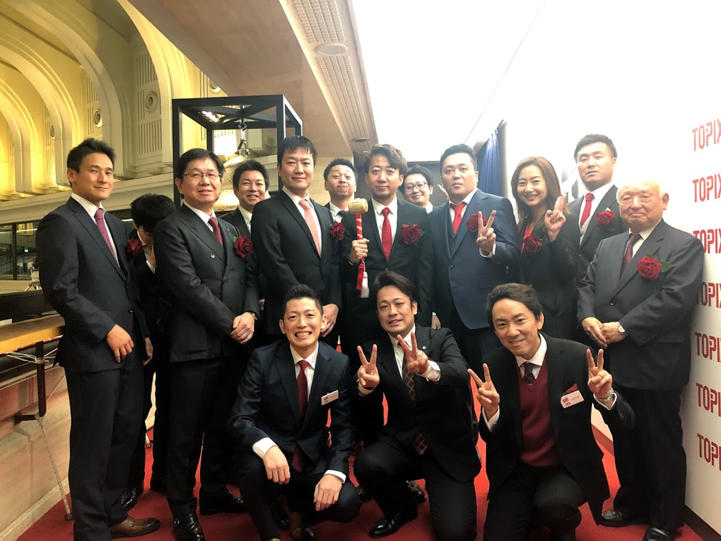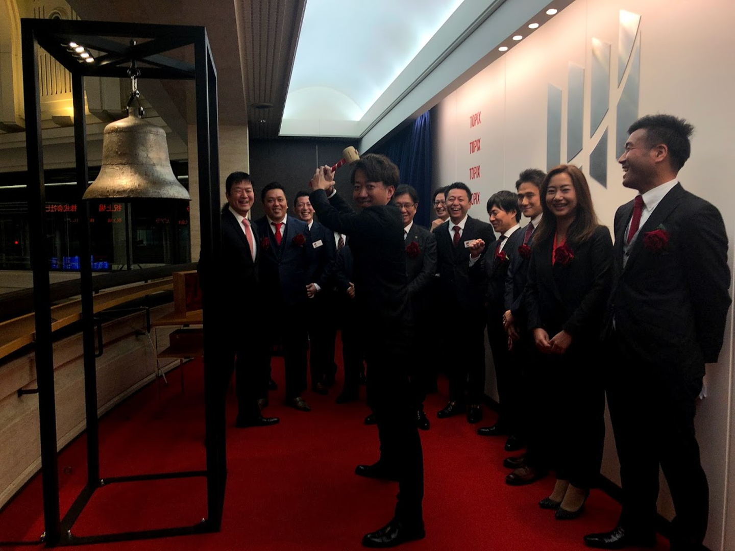 最後に役員で記念撮影。これで、上場セレモニーは終了です。