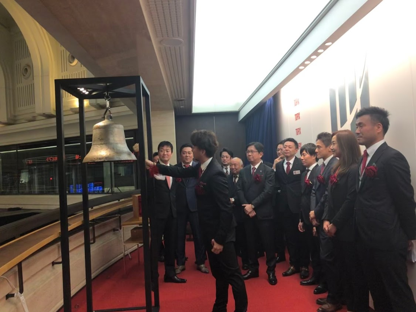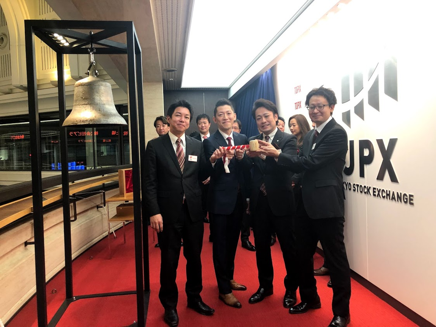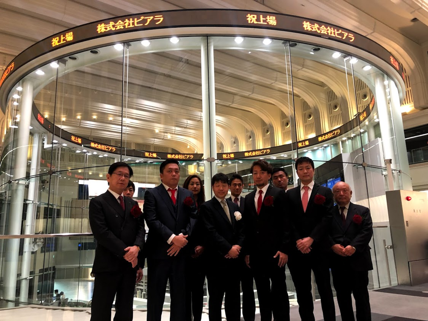 最後に役員で記念撮影。これで、上場セレモニーは終了です。