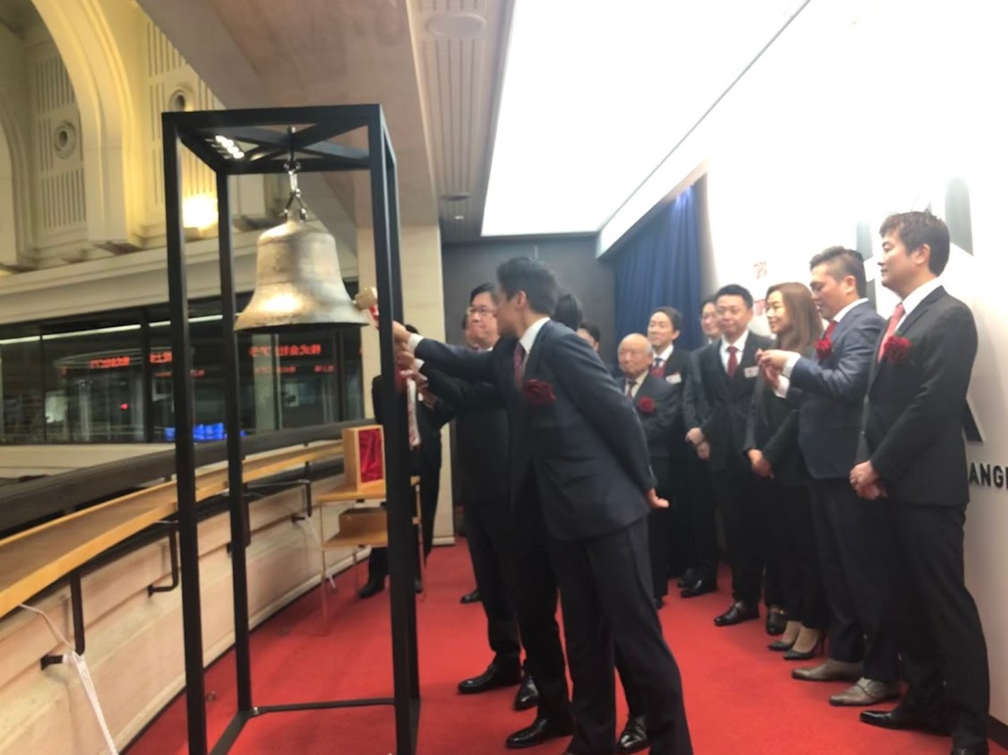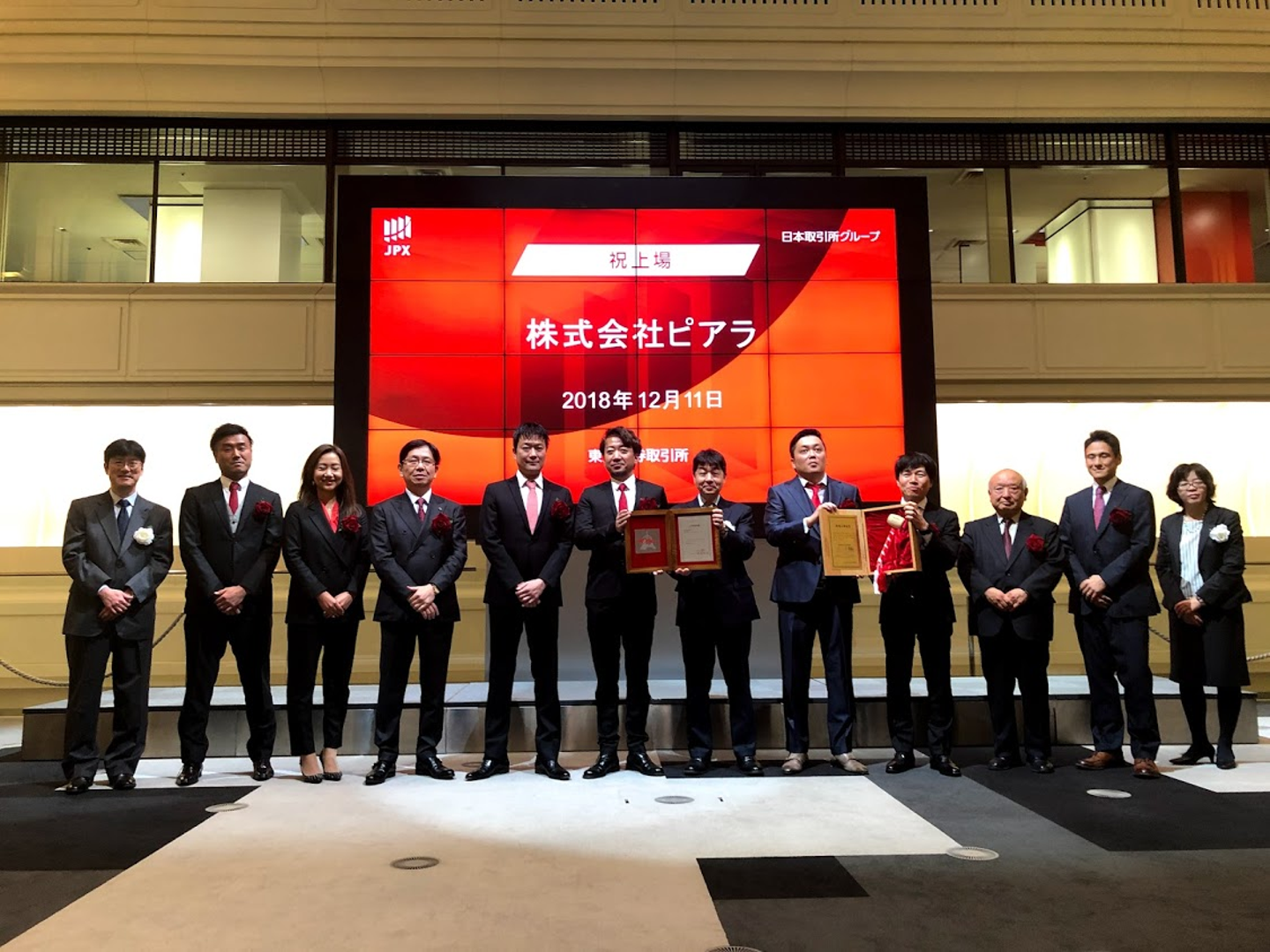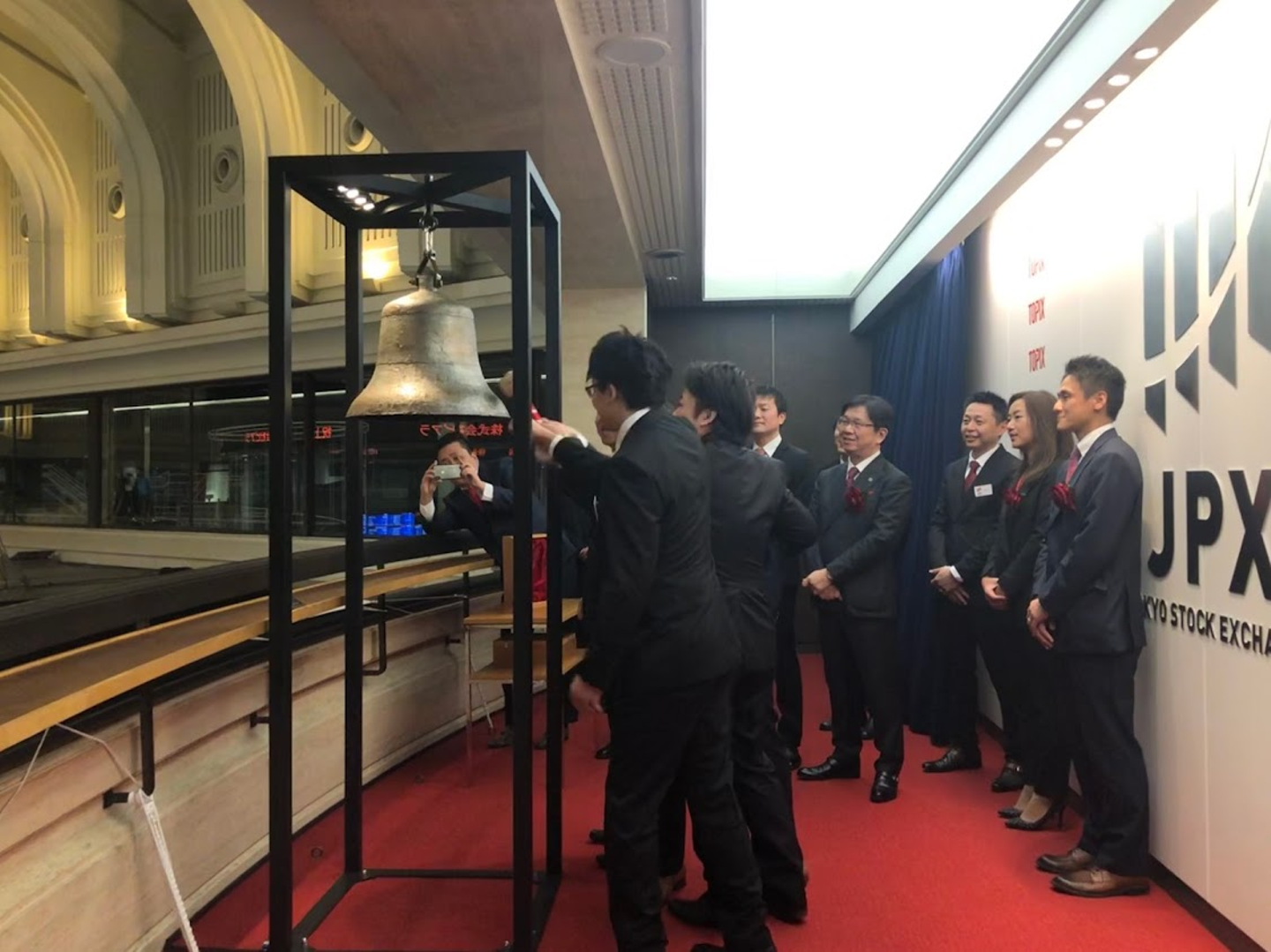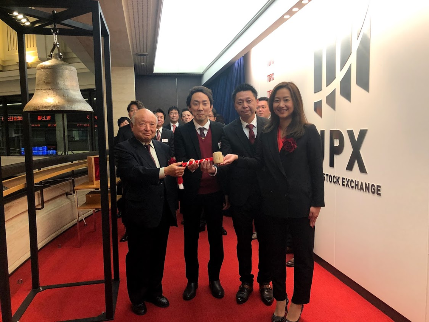 最後に役員で記念撮影。これで、上場セレモニーは終了です。