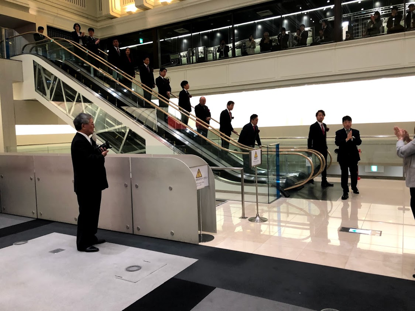 12:10 遂に、役員一同がエスカレーターでオープンプラットフォームに降りてきます!