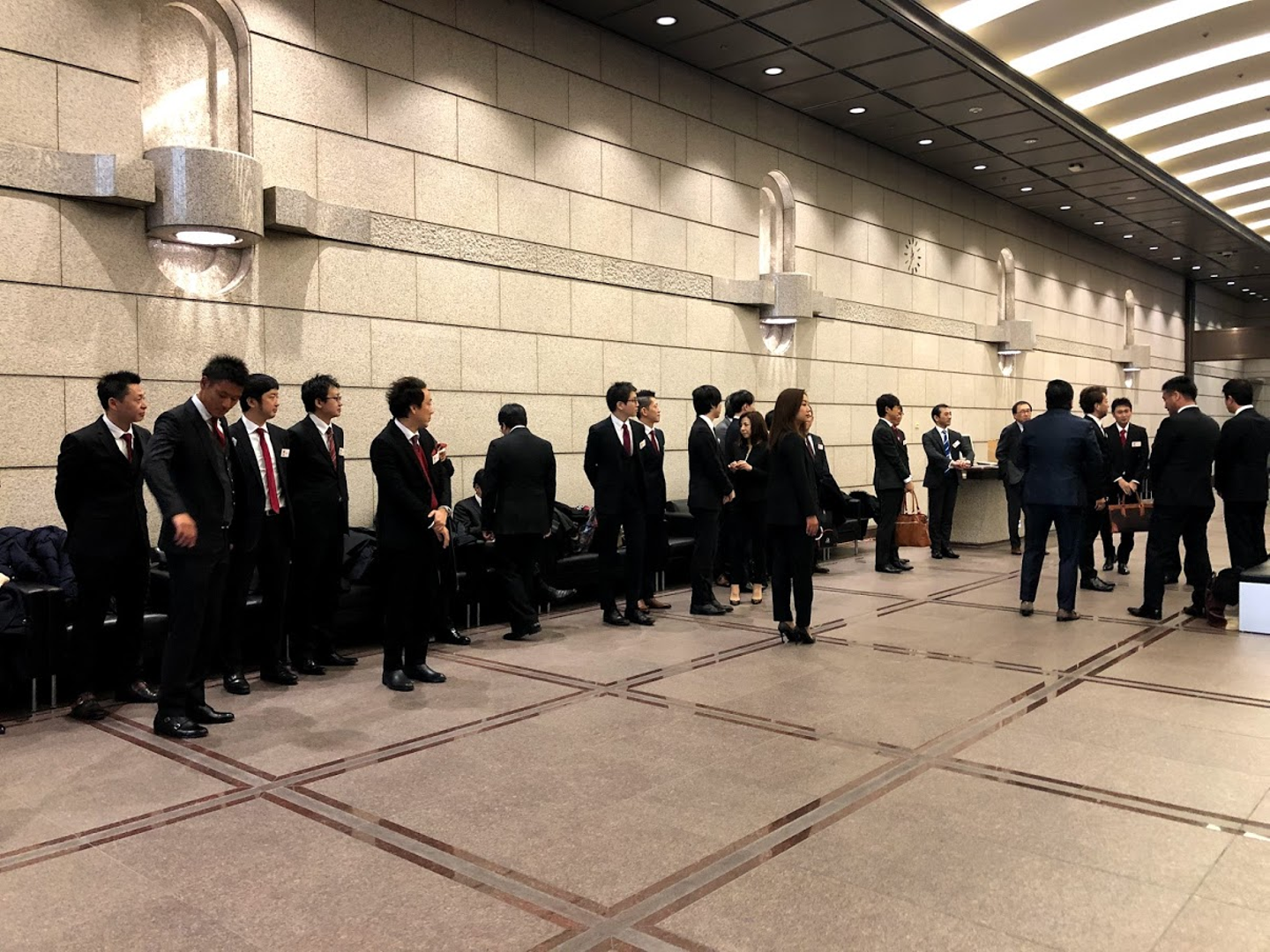 11:30 東証ロビーに続々と社員が集合します。