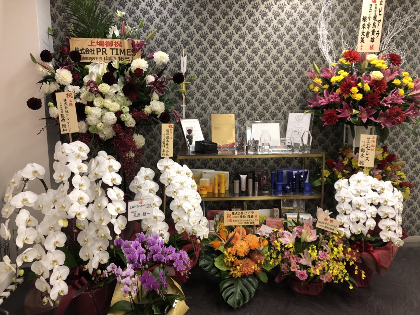 溢れんばかりのお祝いのお花や電報をいただいておりました。