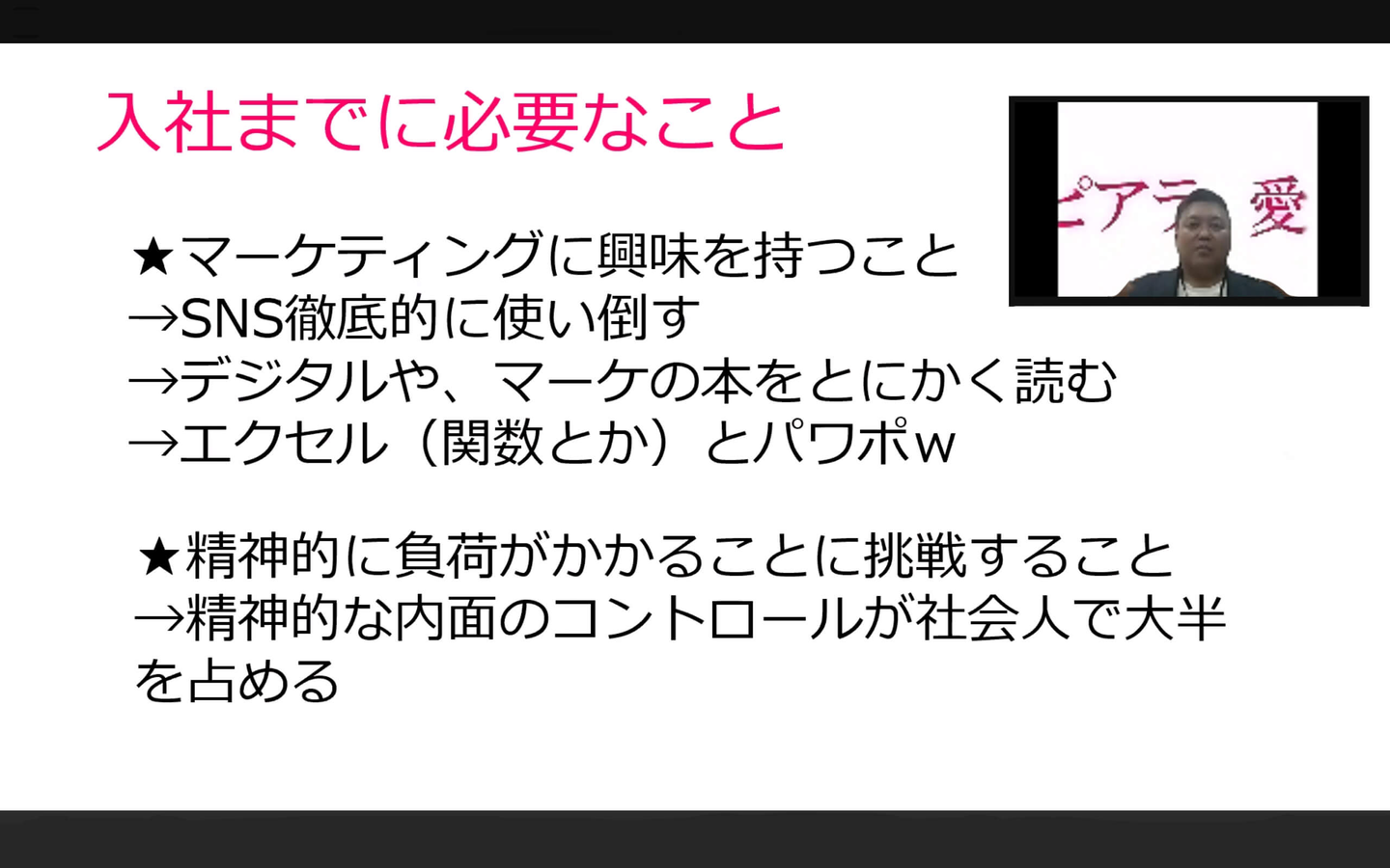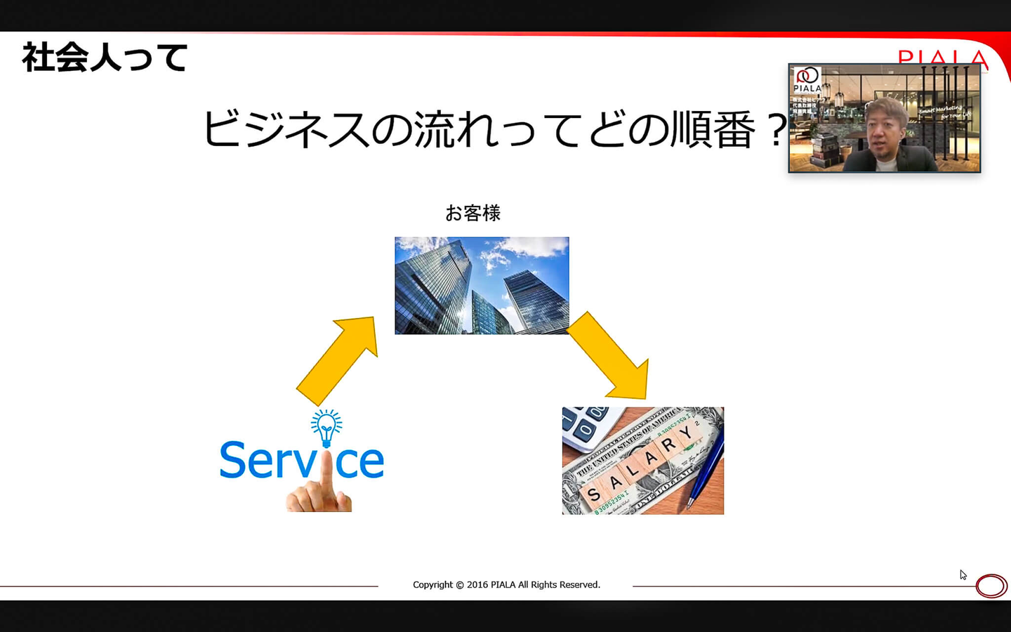 続いて、ピアラで社会人デビューをする内定者たちに向けて、ビジネスの流れやマーケティング市場の今について語り、入社に向けて心構えができるよう激励の言葉を贈られました。