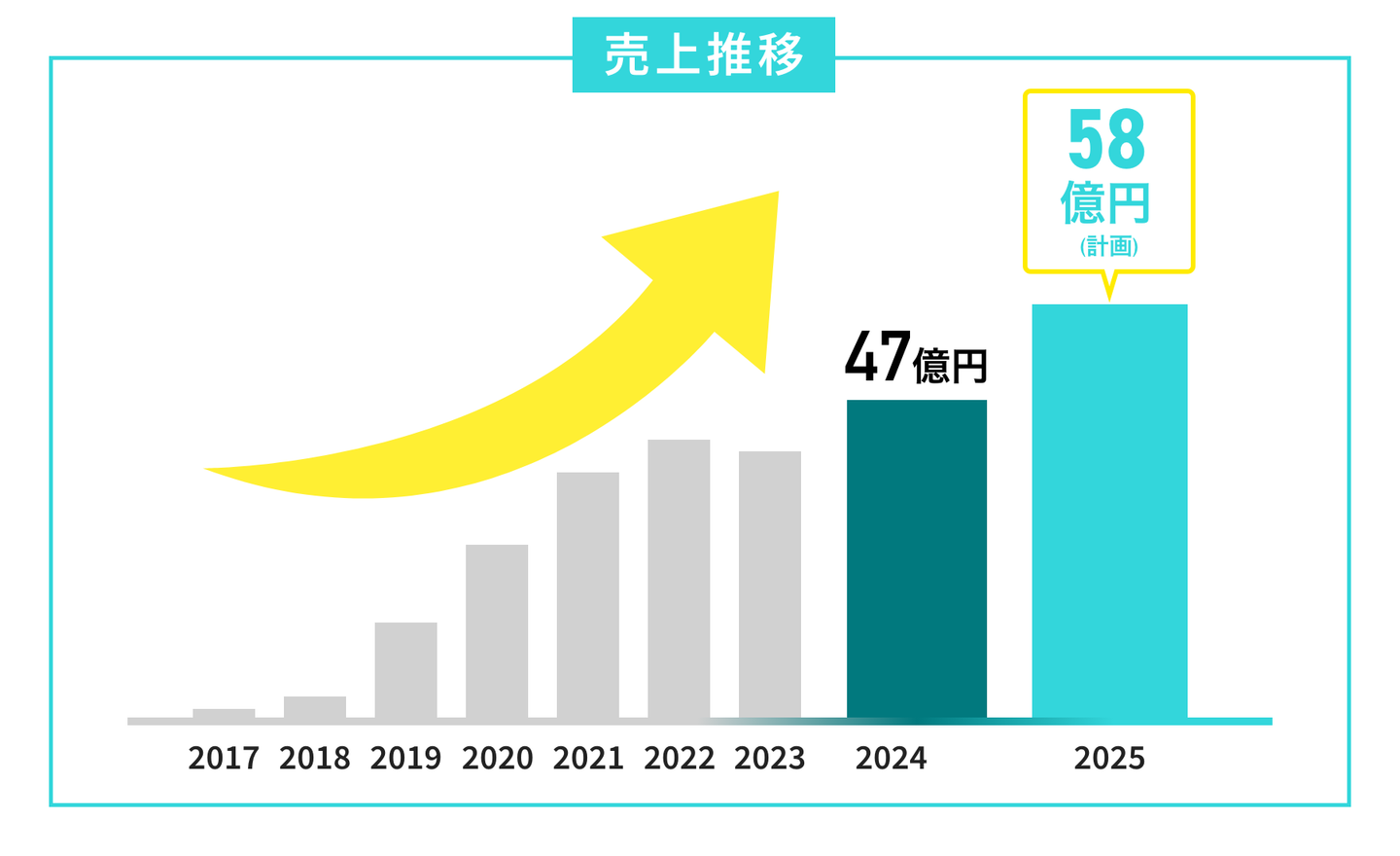 PIGNUSの売上は、創業から毎年右肩上がりで伸び続けています。2024年には47億円を突破し、2025年は58億円まで拡大する見込みです。