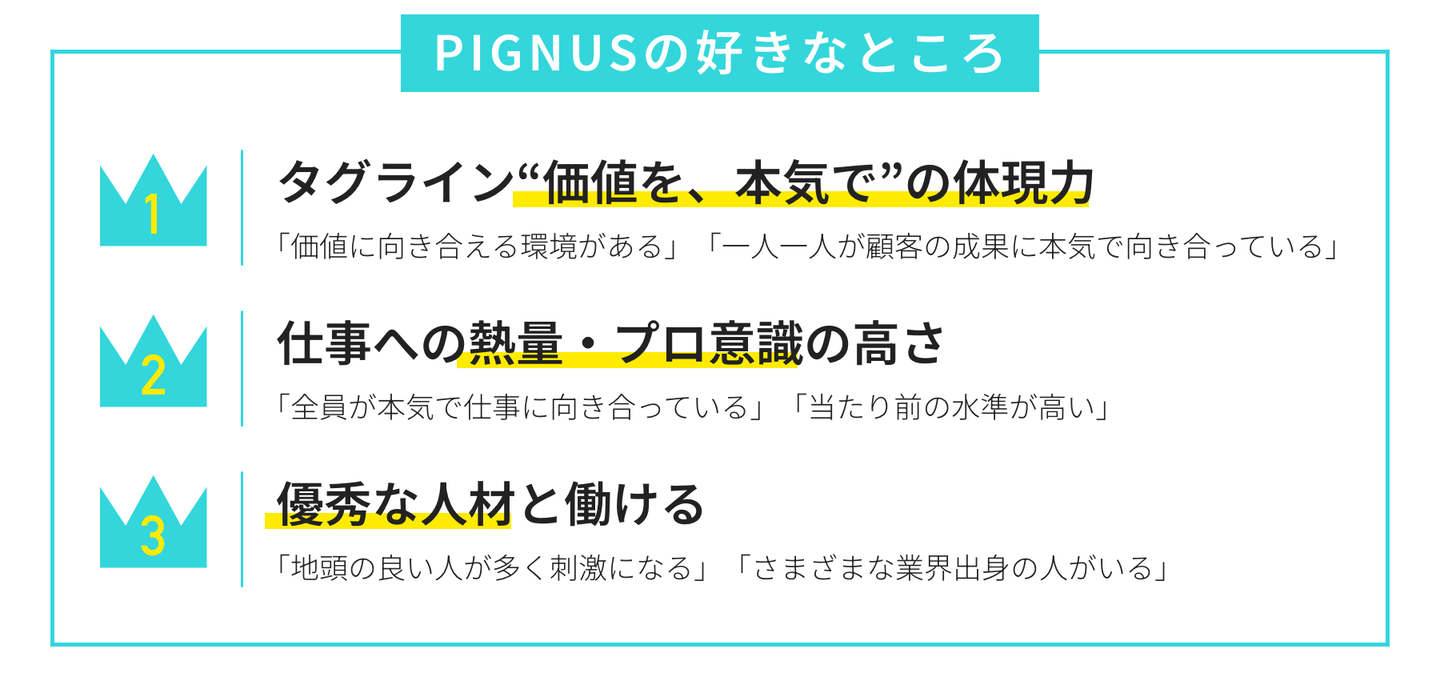 PIGNUSは、「価値を、本気で」という言葉をただ掲げるだけでなく、その実現に向けて仕組み・環境をすべて連動させた会社です。