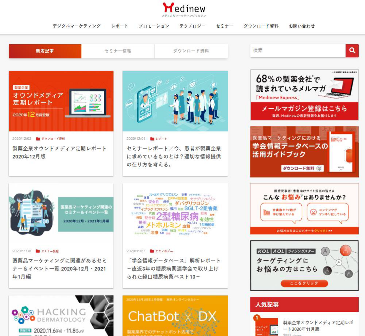 デジタルマーケティング、レポート、プロモーション、テクノロジーに関する情報を中心に、製薬企業のマーケティングに役立つ最新情報を提供しています。