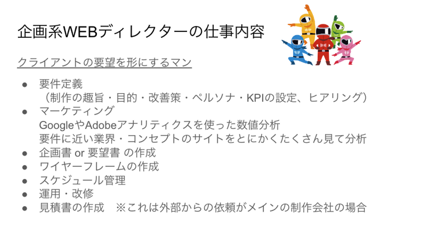 ここまではYさんの経験を元に、企画系のWEBディレクターの話を発表していただきました。