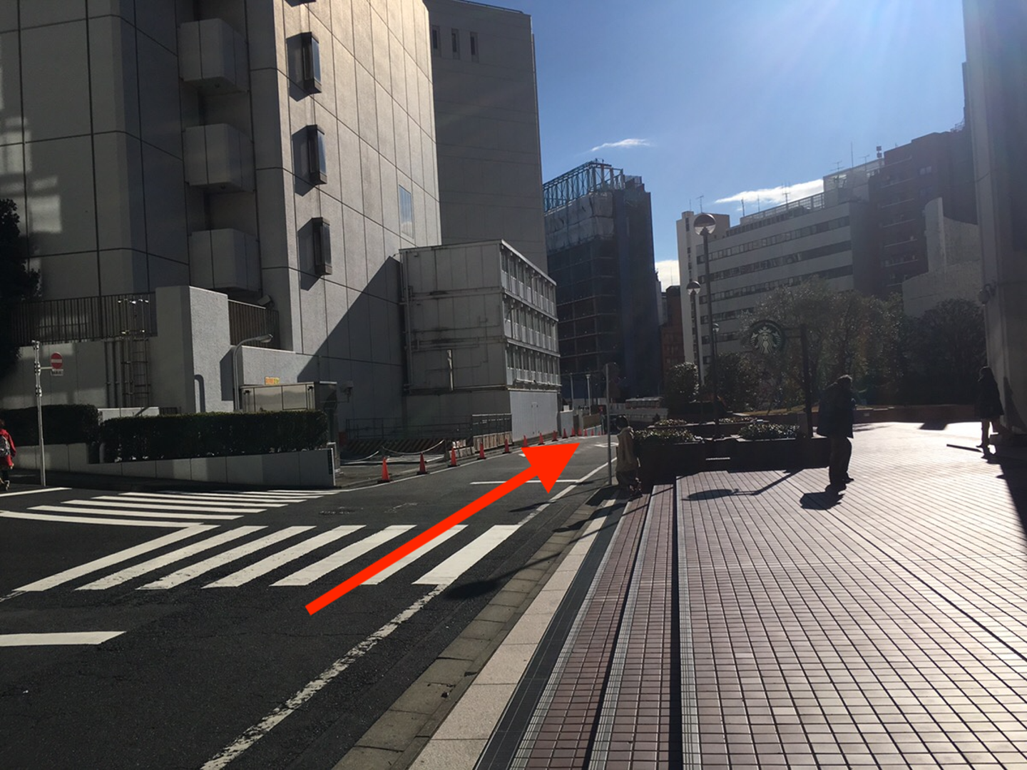 西側の出口を出たら、向かいにルノアールの入っているビルがあるので、右折します。