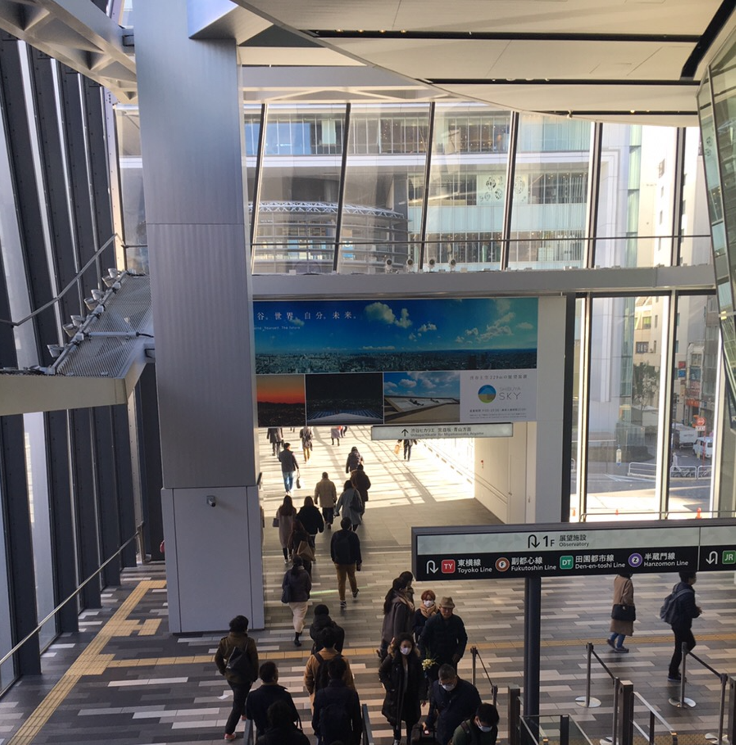 各線、改札を出たら2F通路でヒカリエに向かいます。