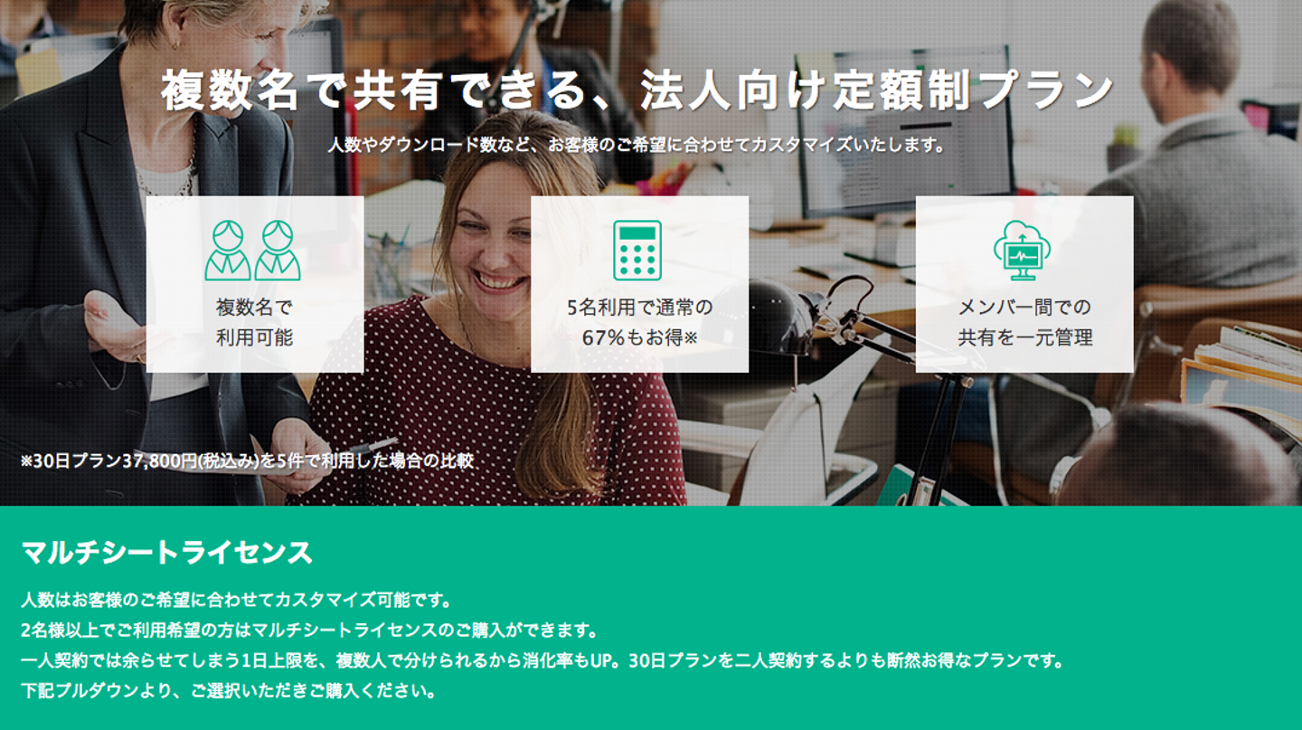 *1:マルチシートライセンス:PIXTA(https://pixta.jp/)の定額制の写真購入プランを複数人で利用できるプラン