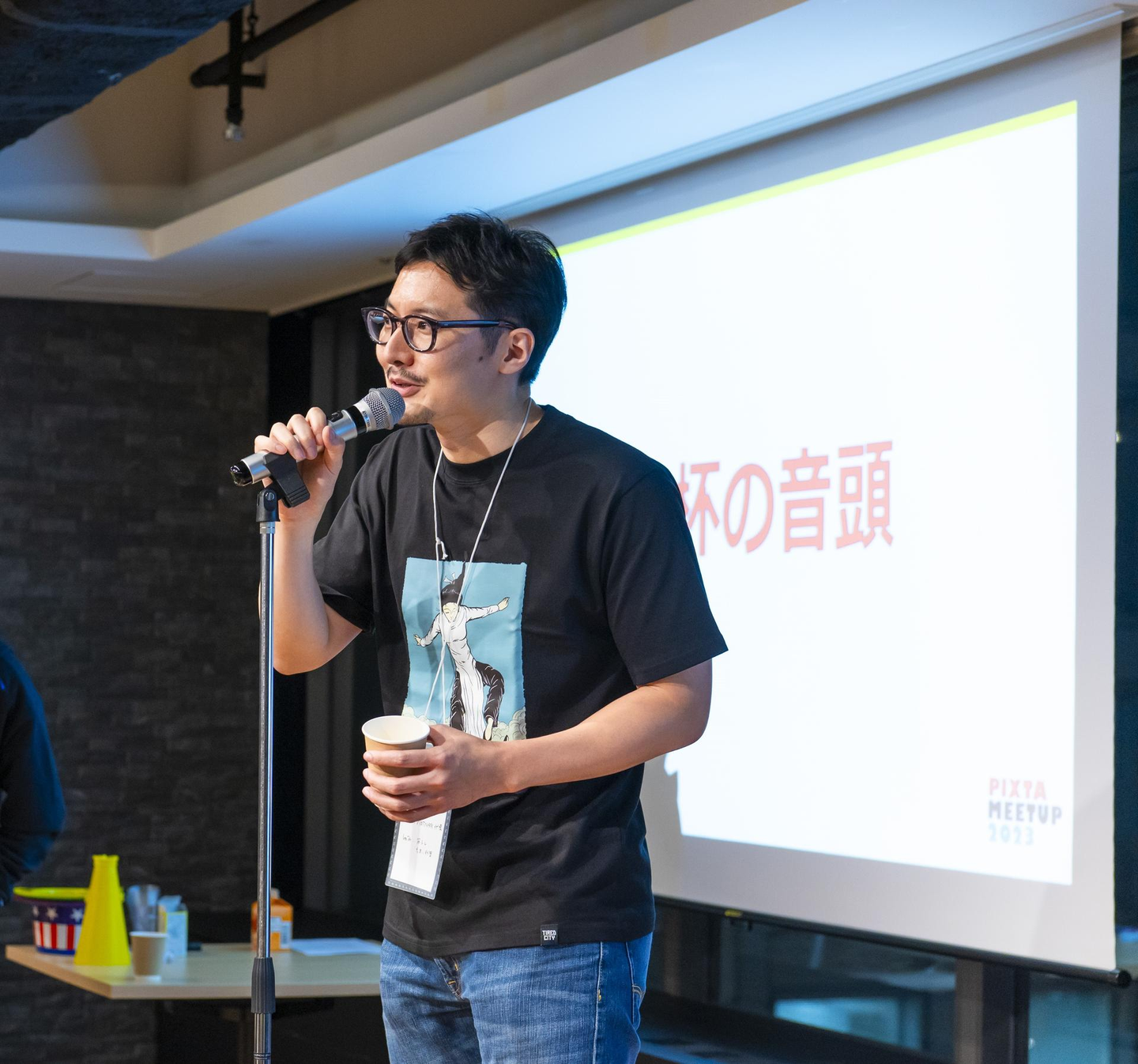 ※全社オフラインイベントで乾杯の音頭を取る小張