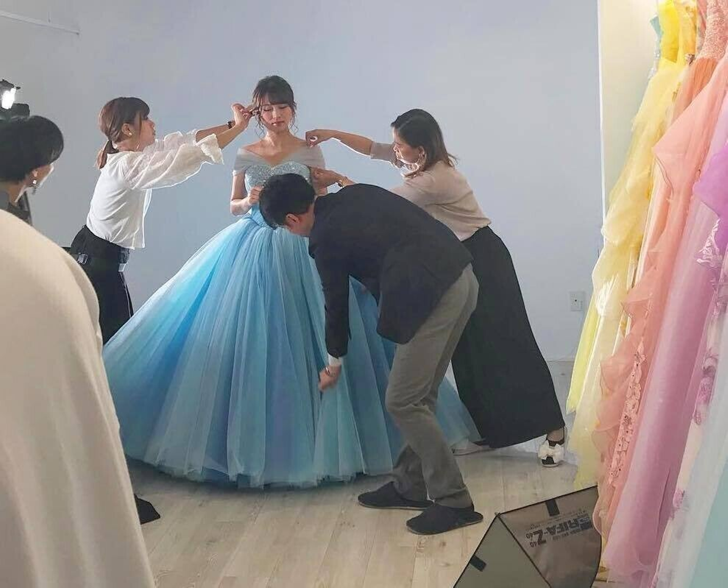 そんなある日、有名デザイナーさんより「プラコレとしてウェディングドレスをプロデュースする」というお話をいただき、ついにオリジナルドレスの制作がスタート。夢を語った彼女も、プロジェクトメンバーの一員として、最高のウェディングドレスが完成。これは夢を語った彼女が入社3年目となったときの出来事です。彼女が夢を語ったことで「ウェディングドレスを作りたい」という想いが社内全体に行き渡り、ぜんいんのところへ、少しずついろんなチャンスがまいこみ、そのチャンスを誰か一人が掴むことで、彼女の「夢」、そして「笑顔」に繋がったのです。