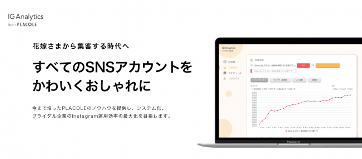 自社メディアと60社90アカウント以上の運用実績の成功ノウハウを可視化したツールです。ブライダル企業のInstagram運用効率の最大化を目指し、分析ツールを提供いたします。