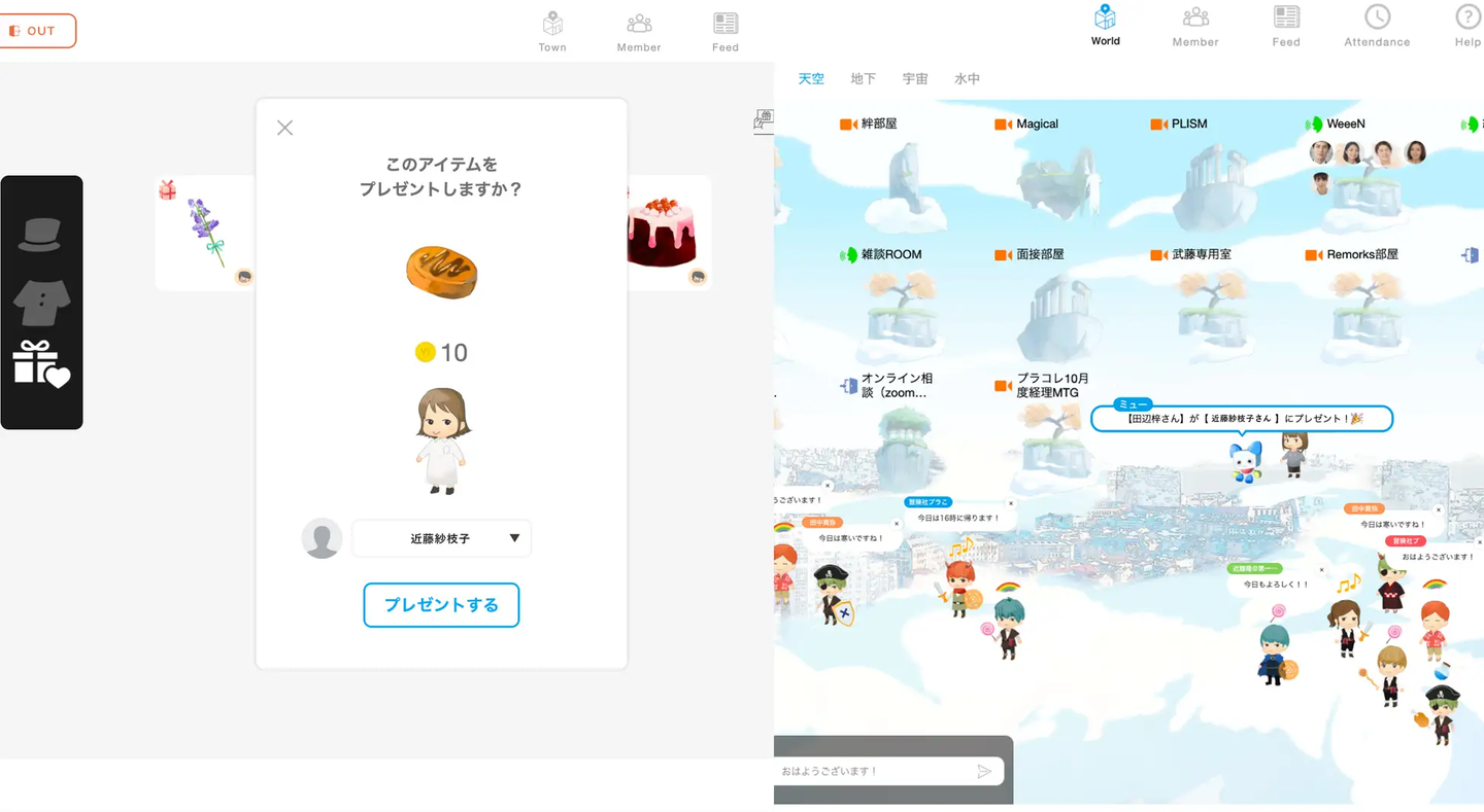 『アバターと働き、アバターと共に成長する。仲間だけの異世界空間を創造できる、コミュケーションプラットホーム。』「ViKet Town(ビケットタウン)」は、社員のワークエンゲージメントを高める事を目的とした異世界空間(2Dメタバース)を提供しているサービスです。異世界空間にアバターを転送することで冒険(仕事)がスタート。異世界には5つの都市があり、非日常感を感じながらワクワクする毎日をスタートすることができ、世界中からあつまるアバターたちの「おはよう」は、孤独感もなく、チームの一体感も生まれます。世界中の仲間達と同じ空間で働いている環境は、通勤時間や居住場所の制限がないため、人生の選択肢がふえる働き方が可能に。 新たな時代が今、幕を開けます。