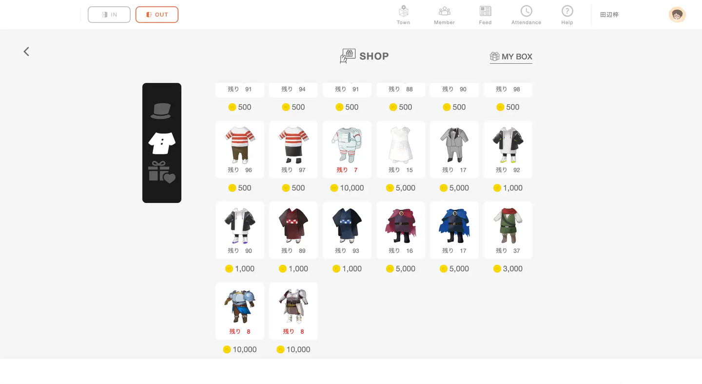 アバターショップにて、服装、装飾、新アイテムと交換することができます。