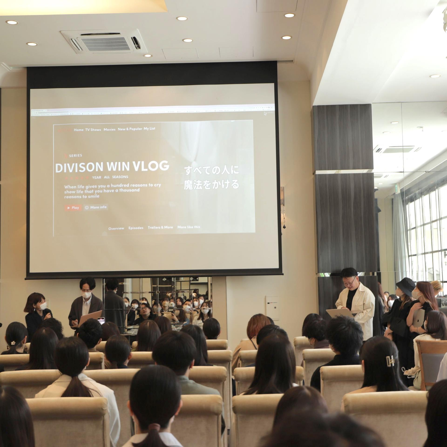 続いては、アドバイザー、ドレスEC、カフェをメインで行っているWIN事業部。今回はNetflixのような動きのある資料での発表。