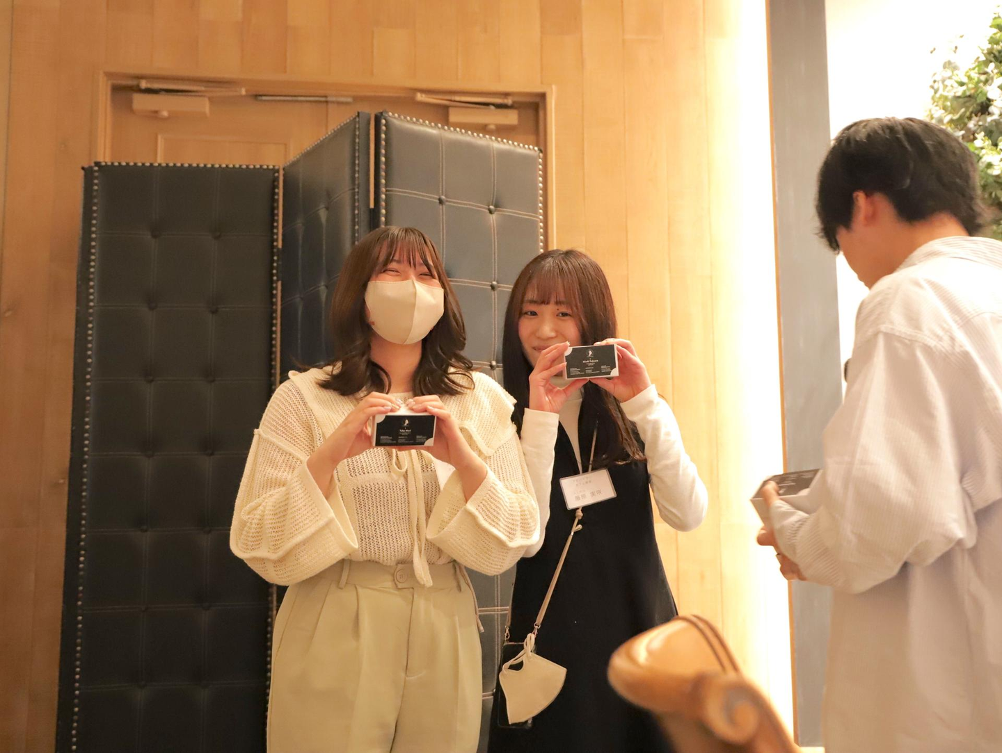 先輩たちから名刺のプレゼントも。社会人としての喜びを実感できる瞬間。