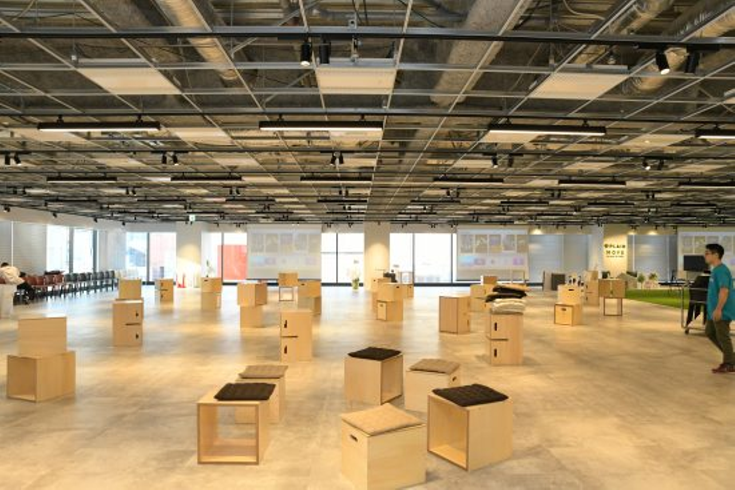 まだまだスペースが余っているオフィスですが、普段は並べている机も撤去して、広いスペースを用意。