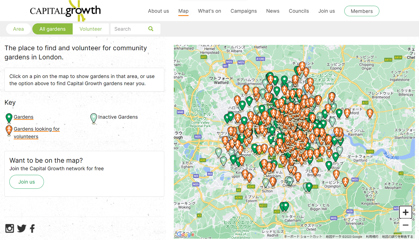 そして、驚くべきはイギリス・ロンドンの事例です。なんとロンドンの市内には3000か所を超えるコミュニティ農園があり、120万トンの野菜が一般の方の手によって栽培されているそうです。このサイトでは農園の情報や、ボランティアの呼びかけなどが行え、同時にアーバンファーミングのノウハウも寄付をすることでPDFなどでもらえる、という仕組みです。