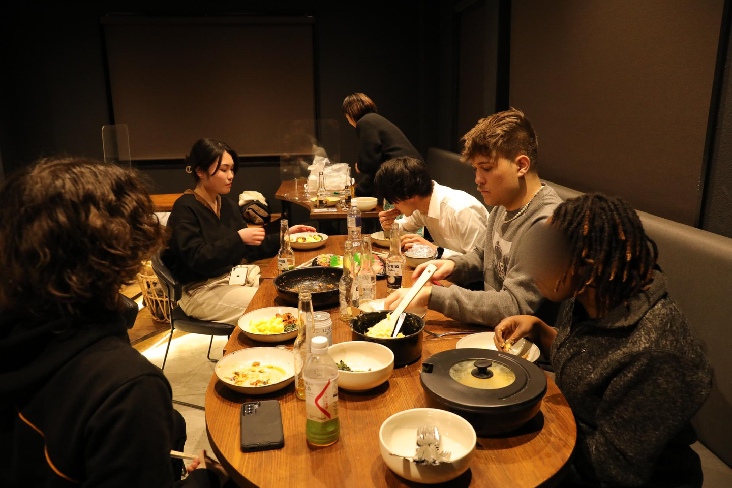 全員でシェアできるよう大皿に盛り、全員でシェアしていきます。
