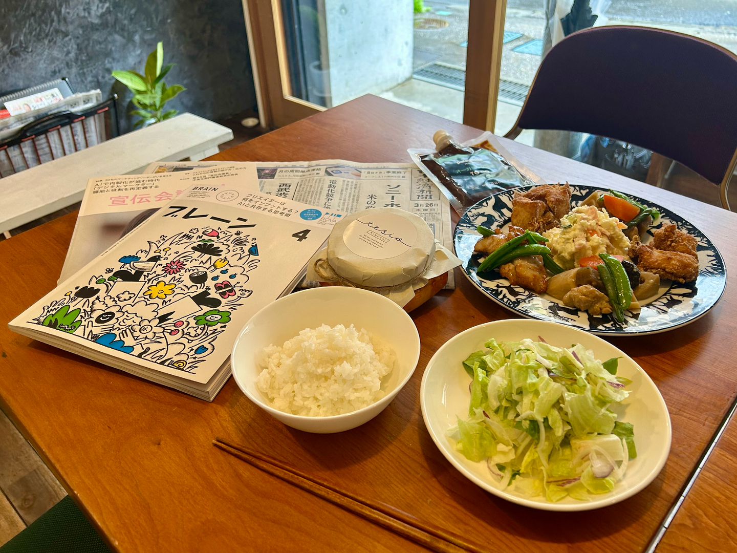 近くのスーパーでお惣菜を買ってきたり、加藤(通称:ちゃーさん)行きつけのお弁当屋さんで調達したりと、その週の気分で内容はさまざま。卵かけご飯と味噌汁で朝ごはん風に楽しむ日もあれば、韓国海苔と穂先メンマを合わせたオリジナルのメニューを味わう日もあります。
