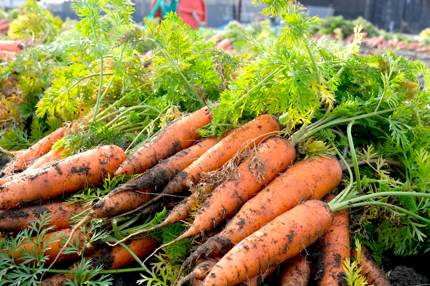 炭素循環農法を成立させ、なおかつ野菜パウダーとして料理に使いやすい野菜…として最終的に決まったのが、にんじん、たまねぎ、じゃがいも。それぞれ品種選びにもこだわり、より野菜本来の旨みが感じられるパウダーを目指しました。