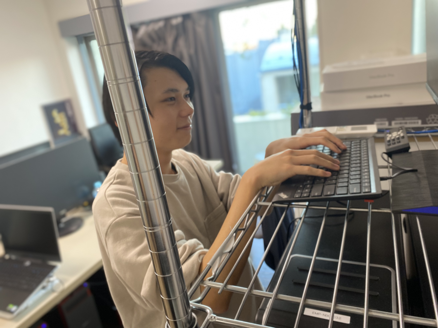 今はリモート前提のコンパクトなオフィスですが、機器は多いのでスペースを工夫して使っています