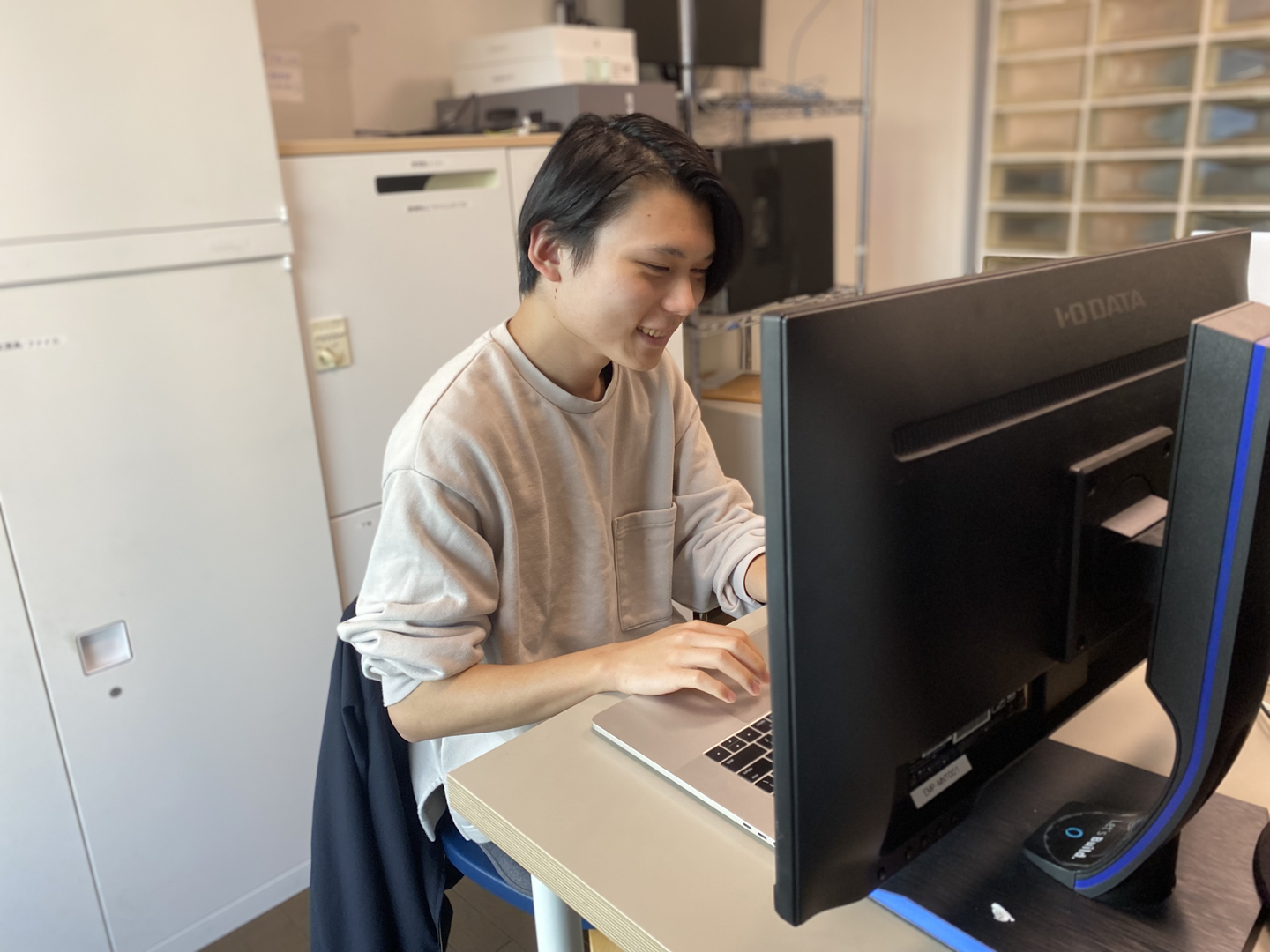 入社してから想像以上に楽しい毎日です。正直なところ、就職前は「自由とはいえ会社だから、多少は形式ばっている所もあるだろうな」と思っていましたが、そんなことはなく、守るべき線引きが「楽しい」と思えるところにある。上下関係もなく本当にフラットな関係性なので、自分の意見が言える・聞いてもらえる。そして、経営の人の考えをちゃんと聞かせてもらえる。僕にとってはとても働きやすいです。
