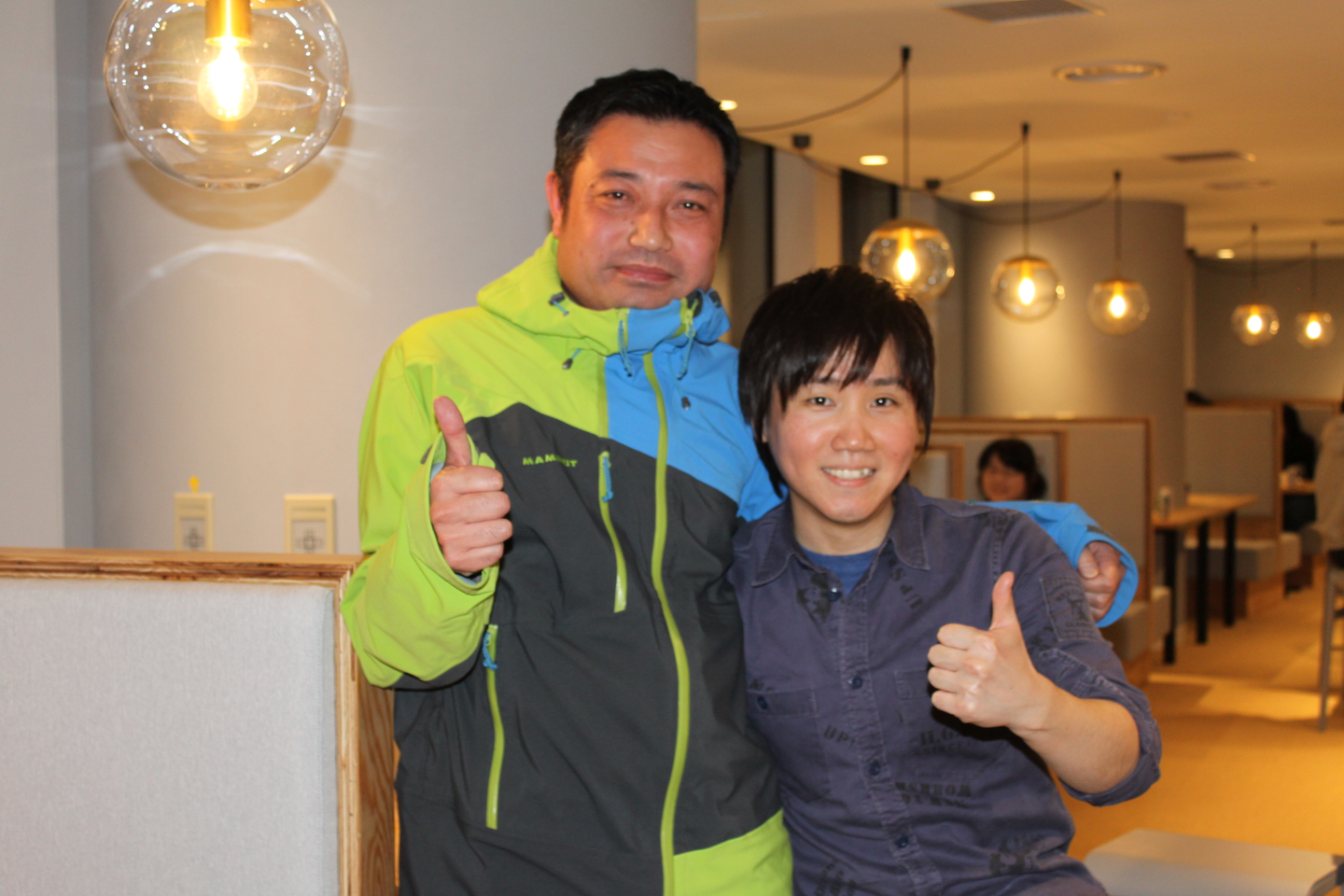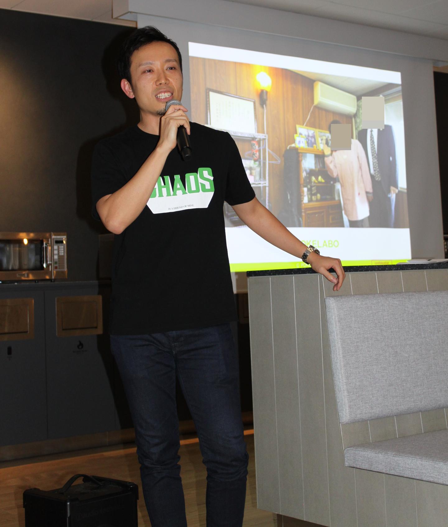 ツリーとZOZOスーツのレイヤードスタイルを見事に着こなしております我らが採用チームの辻。