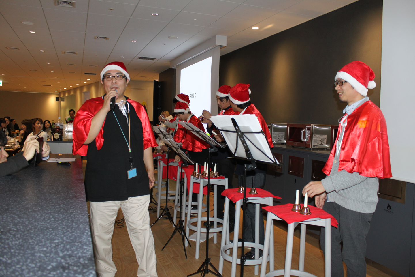 (この可愛いサンタの衣装に、この真顔がおもしろすぎて会場側は爆笑中)