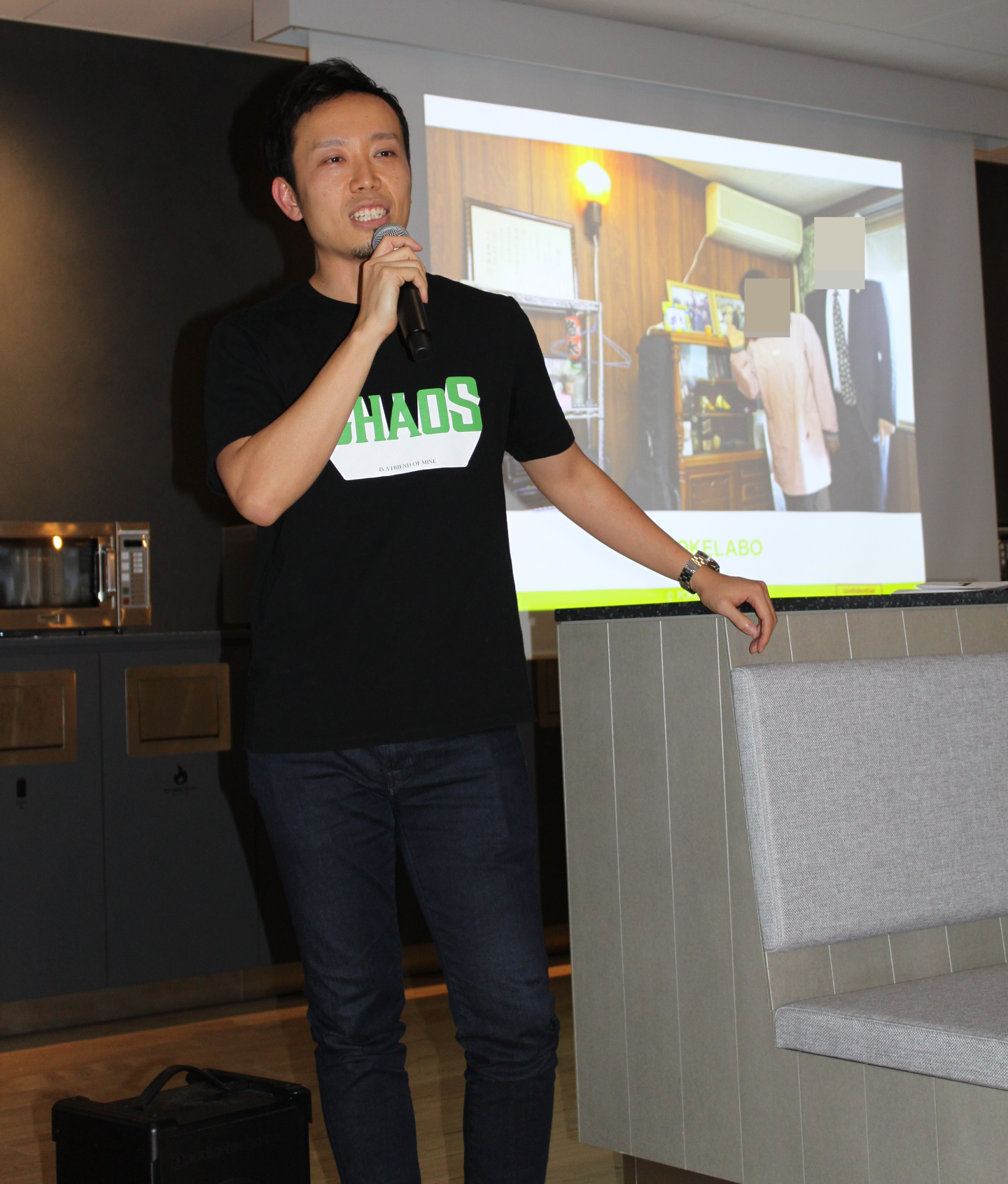 スクリーンの前に招集された本部長櫻井、代表前田、人事部長丸野。