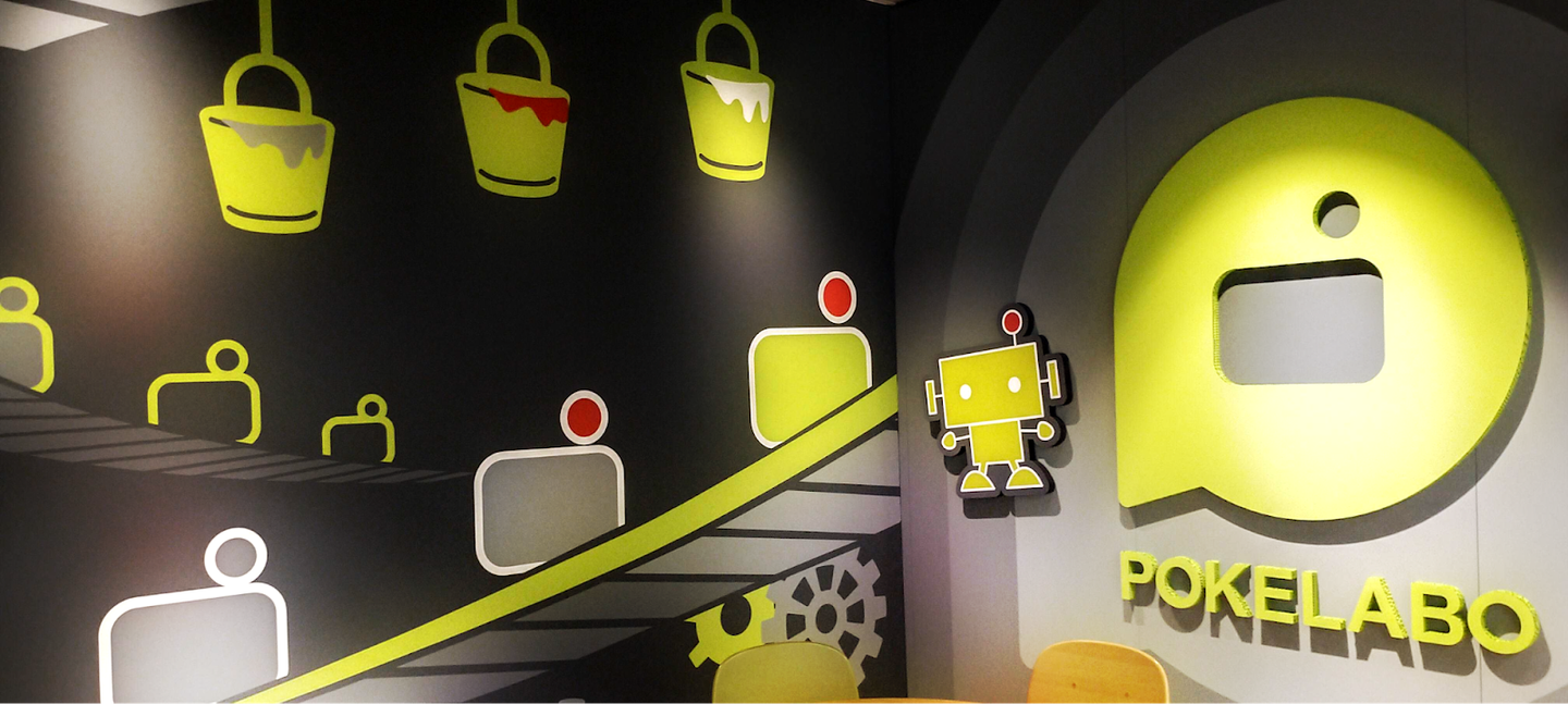 イラスト自体はもともと旧ロゴ+ポケロボくんからデザインしていました。