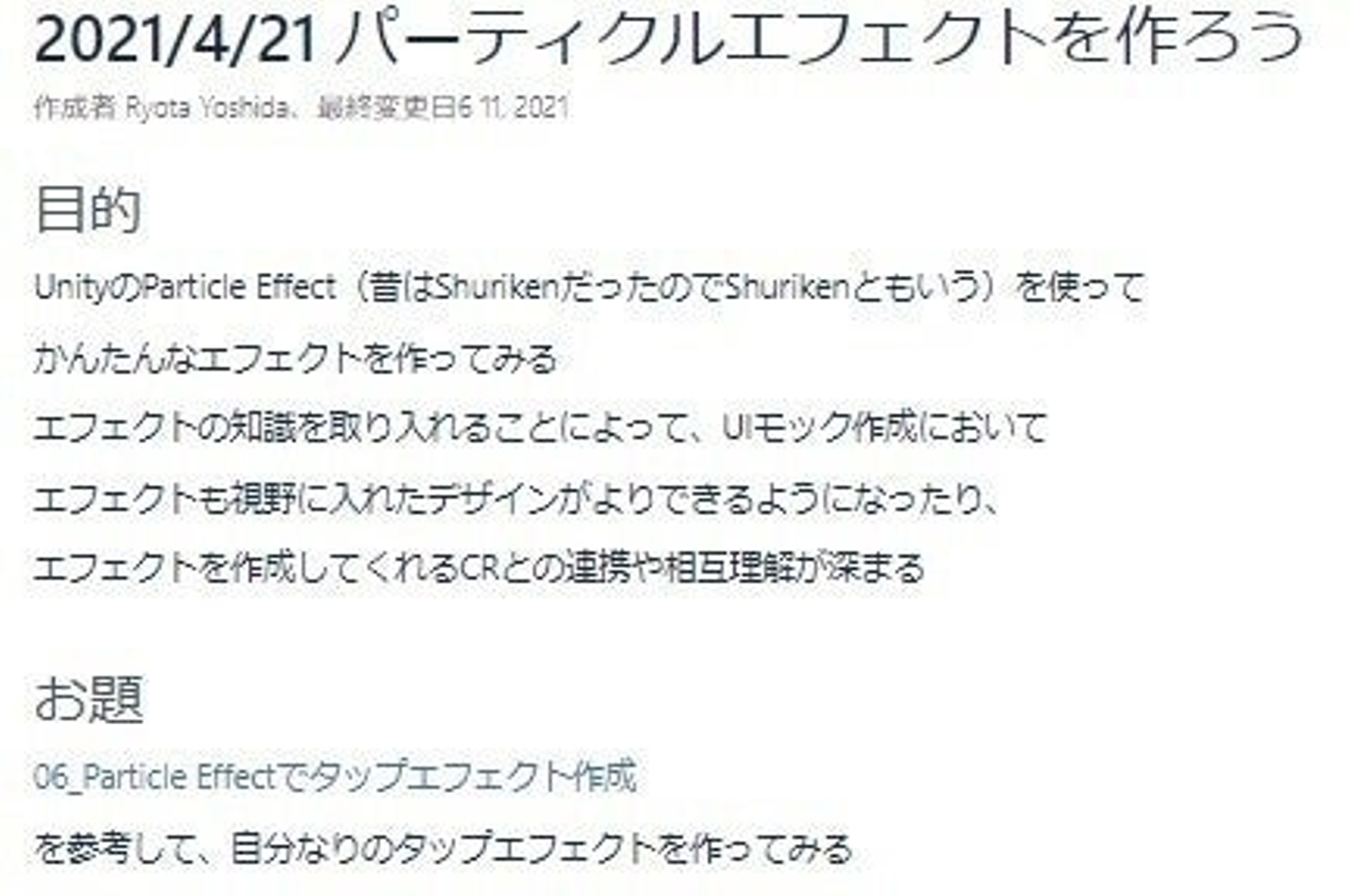 吉田:例えば、直近やったのは「パーティクルエフェクトを作ろう」というテーマです。