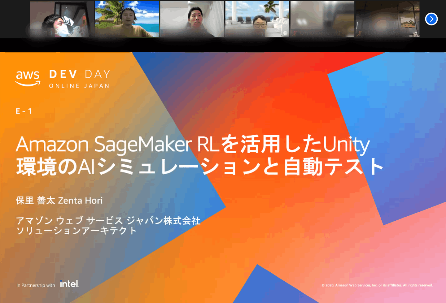 基盤チームの技術研究の取り組みの一環で、AWS社と連携してML(マシンラーニング)の導入を進めており、今回は「Amazon SageMaker RLを活用したUnity環境のAIシミュレーションと自動テスト」というテーマでハンズオン形式の勉強会をAWS社に実施いただきました。