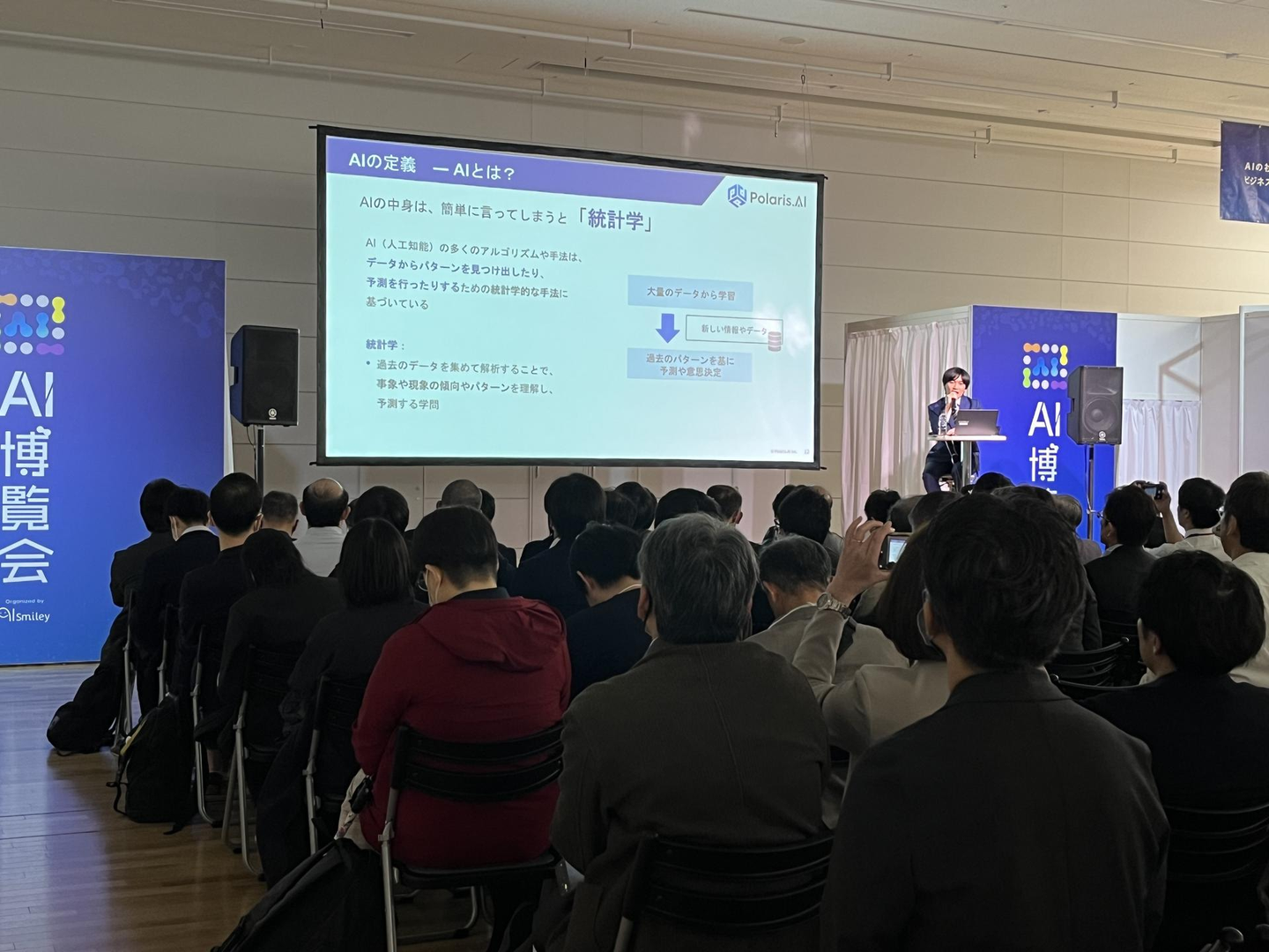 2025年3月27日、Polaris.AI代表の徳永優也が、国内最大級のAIイベント「AI博覧会」に登壇し、「生成AI革命の全貌 ~AIの社会実装の現在地と2025年の予測~」と題したセミナー講演を行いました。