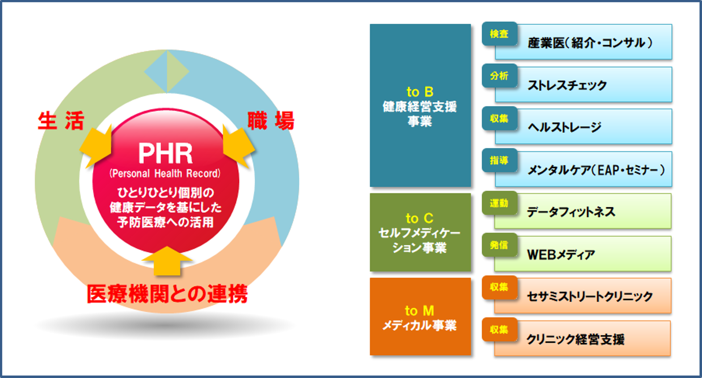 健康経営・予防医療・ヘルスケアなどを軸に、主には8事業。こんなことしてまする。