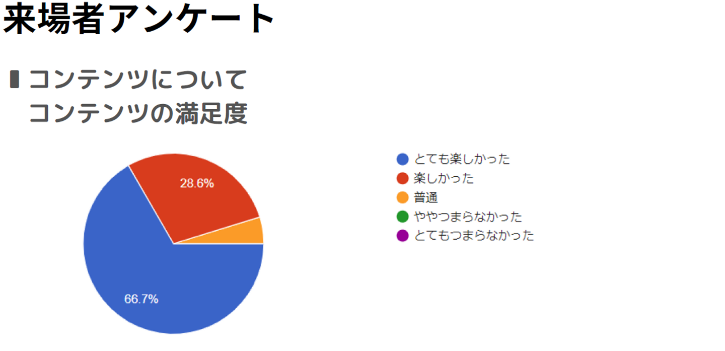 Family Day後に来場者アンケートにご協力いただきました。コンテンツの満足度の結果を見て、本当にこのプロジェクトをこのメンバーでやれて良かったなあと心から思いました✨